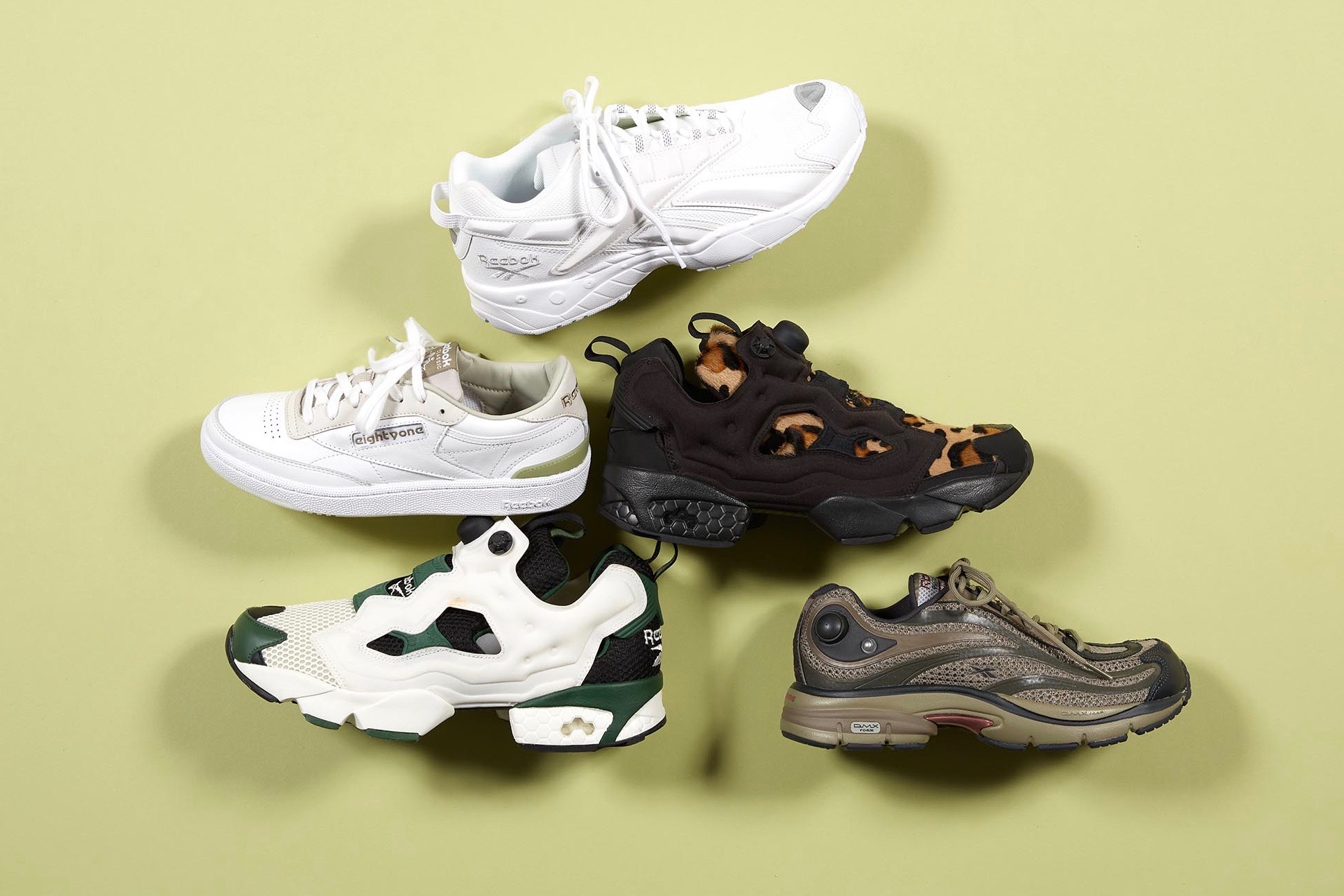 リーボック定番の「インスタポンプ フューリー」。迷彩柄のようなホワイト×グリーンの配色で秋らしさを取り入れて。シューレースを使用せず、ポンプで空気を注入することで好みのフィット感に調節できます。スニーカー「インスタポンプ フューリー」¥18,000(リーボック/リーボック アディダスお客様窓口)