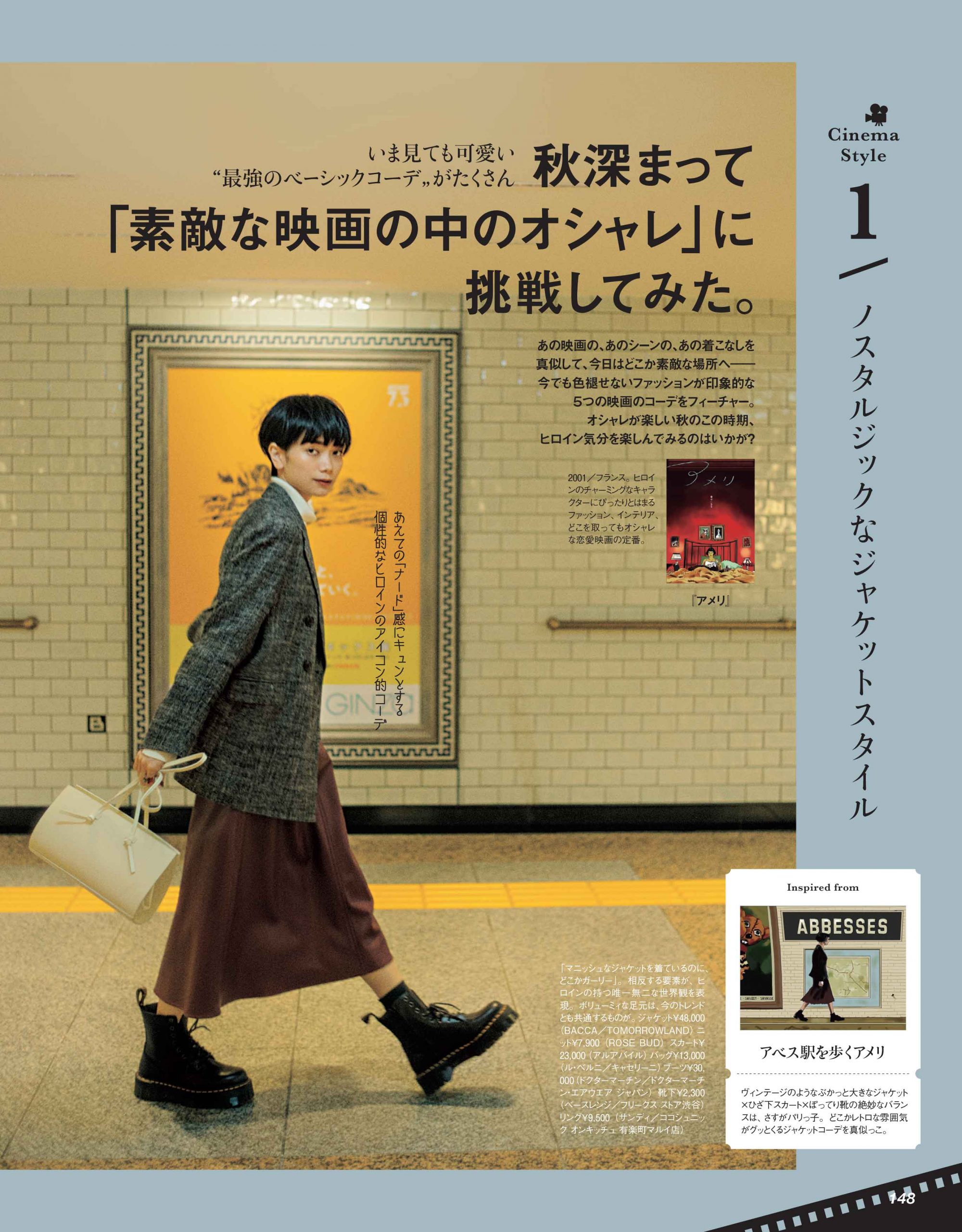 何年前の、いや何十年前の公開でも、“いい映画”のファッションって、時に真似したくなるほどオシャレなことがある――そんな思いを、シンプルに形にした企画です。ちなみにこの写真は2001年公開作品『アメリ』の1シーンを真似たもの。とても20年近く前のファッションとは思えないほどオシャレじゃないですか?