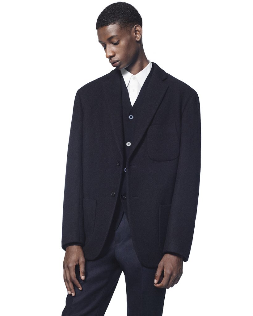 機能性素材からヘリンボーンツイードにいたるまで、織りや表面加工にこだわり抜いた結果、視覚的かつ触覚的なクオリティが飛躍的に上がる効果が生まれています。ポケット、ジッパーやステッチ、カラーコントラストが際立つライニングなどの細かなディテールに、+Jならではのワークマンシップが息づいていています。