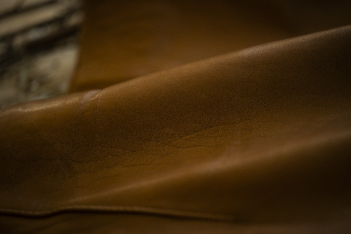 まず、このレザーミニスカート(キャメル・サイズXS)。丈の長さは41㎝です(編集K調べ)。この長さだと、身長154㎝の私が着ると膝上7~10㎝くらい。これより長いともったりしてミニの良さが出ないし(それならマキシを履いたほうがバランス◎)、これより短いとオトナとしての品性に欠ける気が(キャラやスタイルにもよるけど!)。