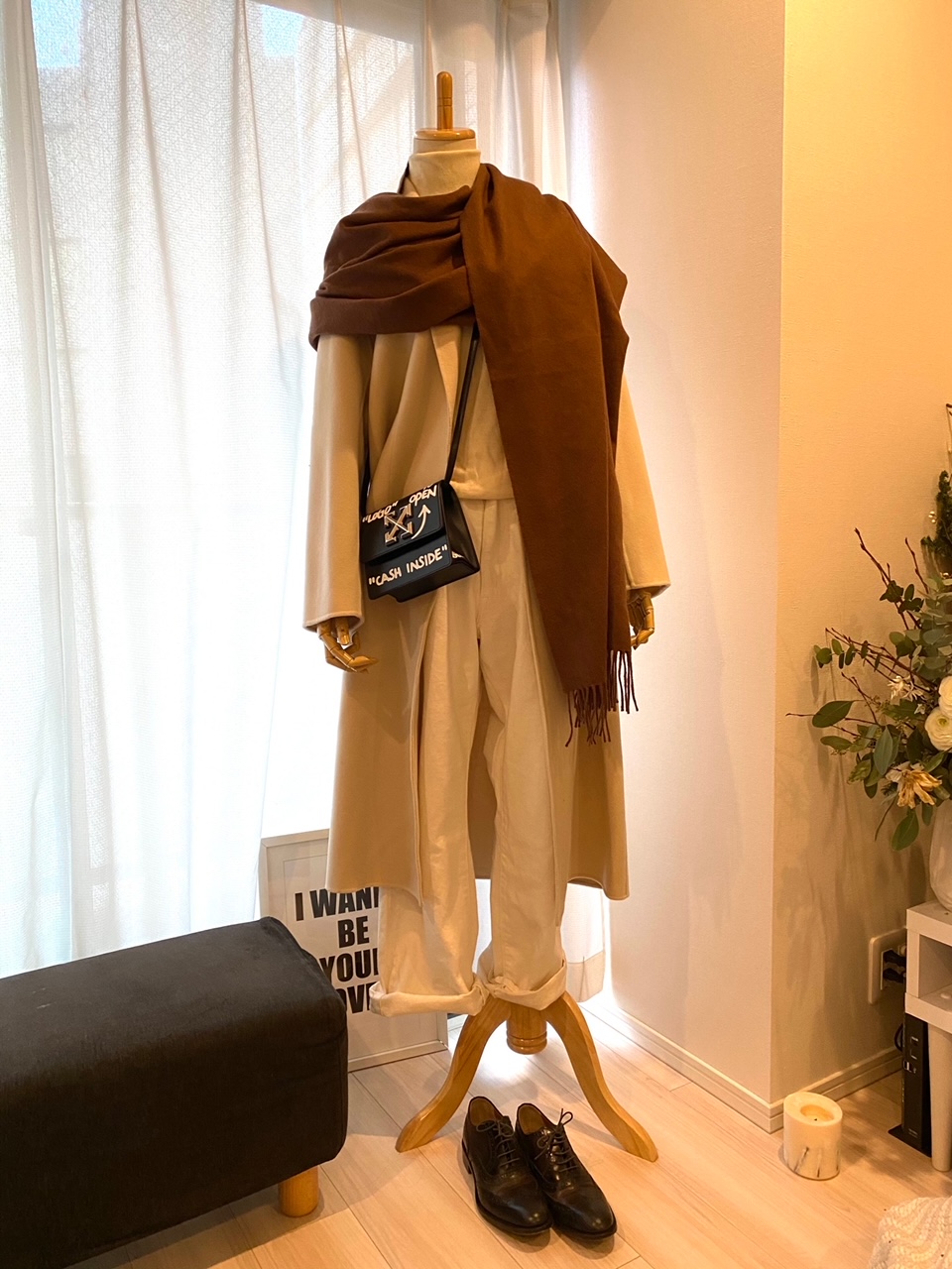 Stall→Jhonstons、Knit→MUJI、Pants→Shinzone、Coat→Stunning Lure、Bag→Off-White、Shoes→SARTORE