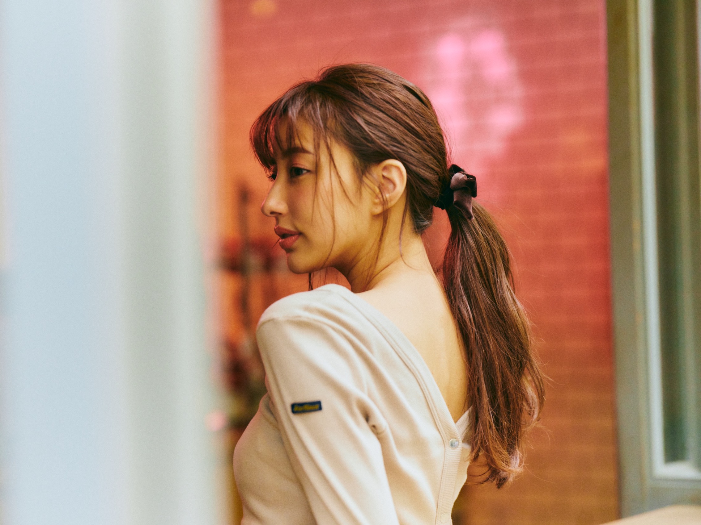 何気ない一つ結びにも、ヘアアクセをプラスすれば手抜き感ゼロ!後れ毛を作ってゆるっとまとめるのがポイントです。