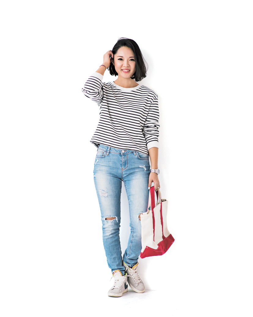 原 キレイめすぎると何しに来たんだって思いますけど、カジュアルすぎもどうかな。デニムにボーダーって女性にありがちだけど…。