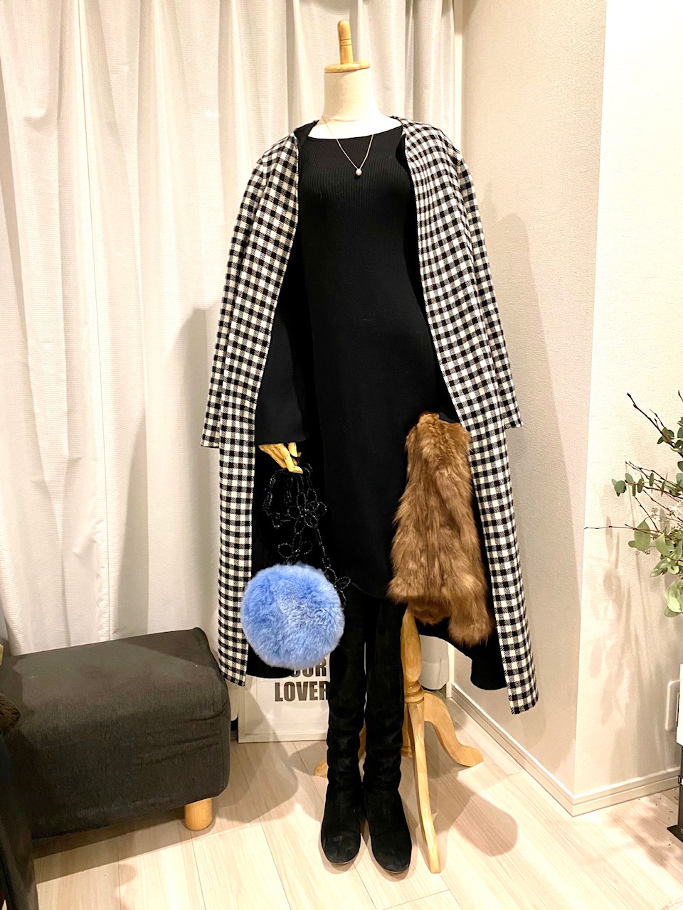 One Piece→UNITED ARROWS Coat→STEVEN ALAN Necklace→JUCY ROCK Stall→NO BRAND Bag→MOZH MOZH Boots→PELLICO