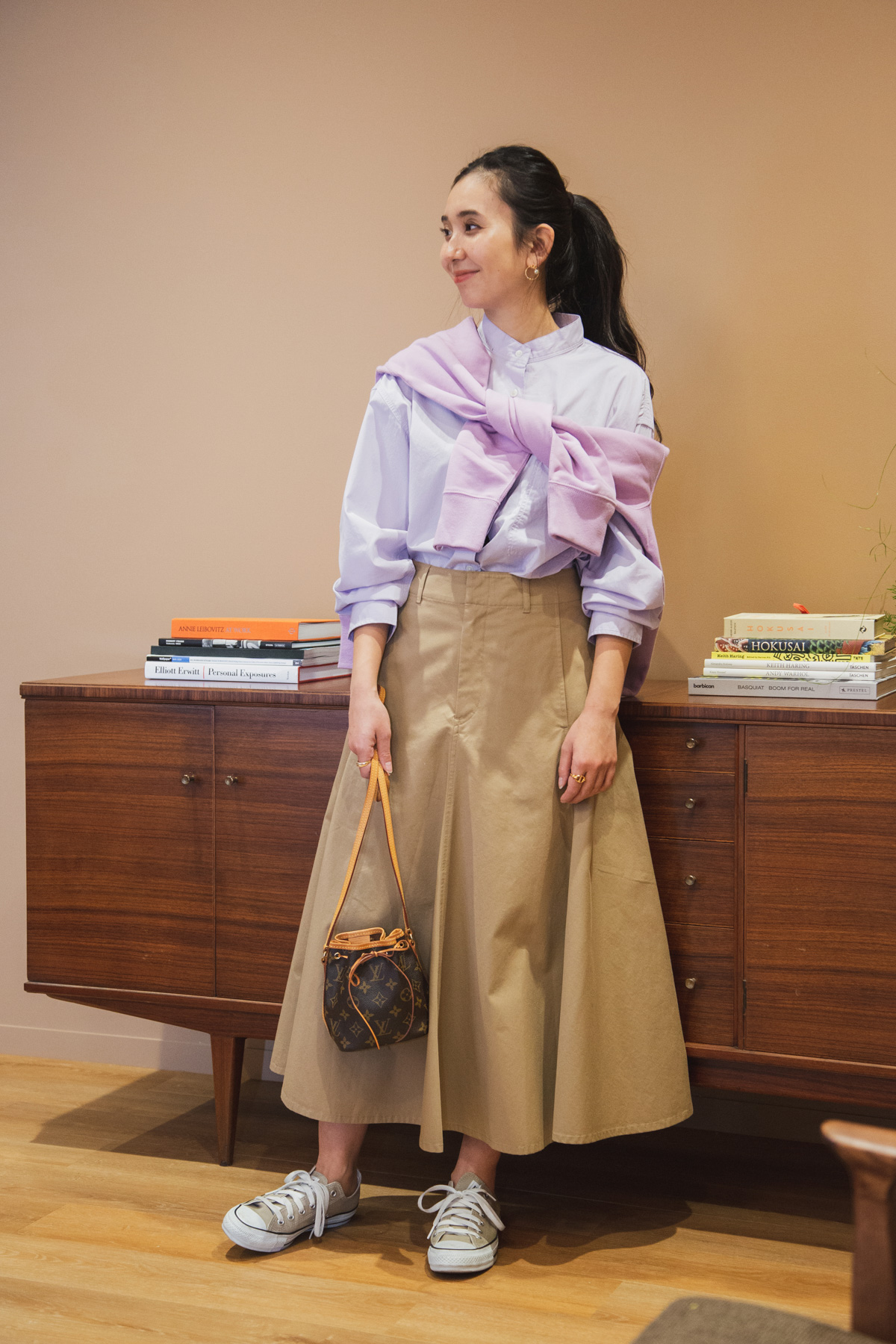 Shirts、Sweat、Skirt…UNIQLO Bag…Louis Vuitton Shoes…CONVERSE