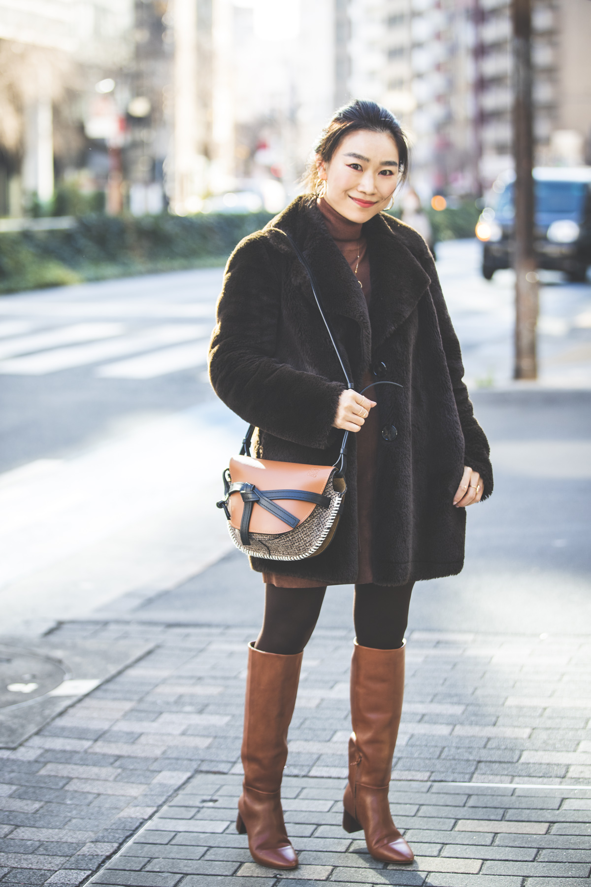 旬なブラウンのワントーンコーデのスパイスとして、この冬大活躍してくれているロエベのゲートバッグ。立体的なフォルムとデザイン性で、コーディネートに奥行きが生まれるんです。(棚田トモコさん 骨格アナリスト/本誌ライター)