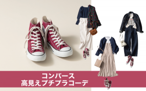 今回は「マルーン ハイカットコンバース」を使った、春まで着られる全身プチプラ服のコーディネートを提案します。