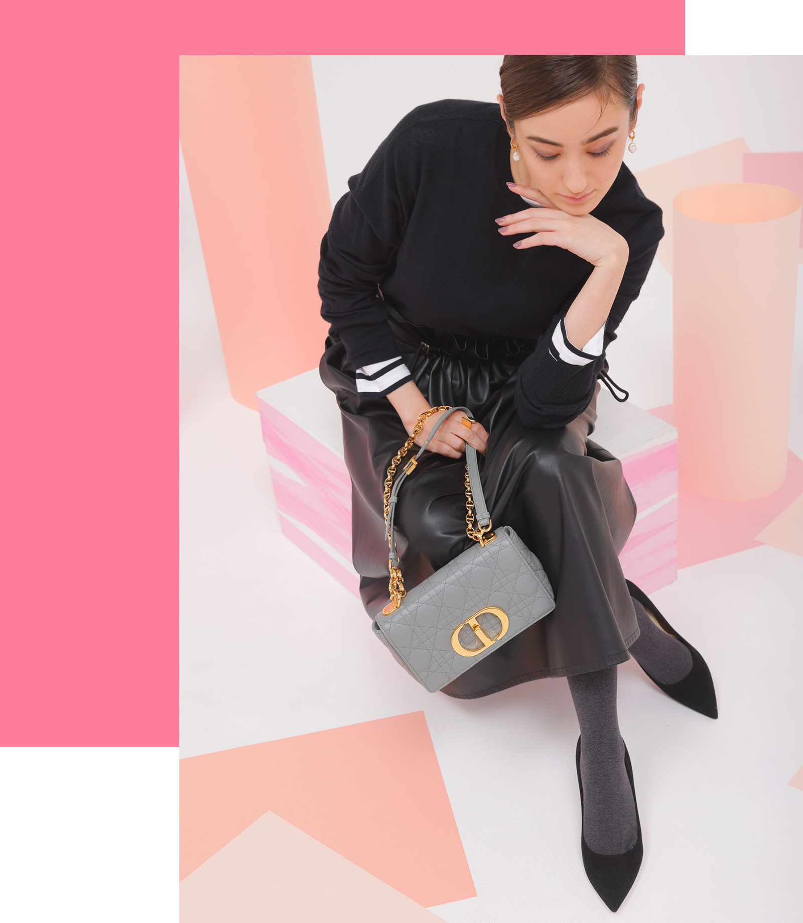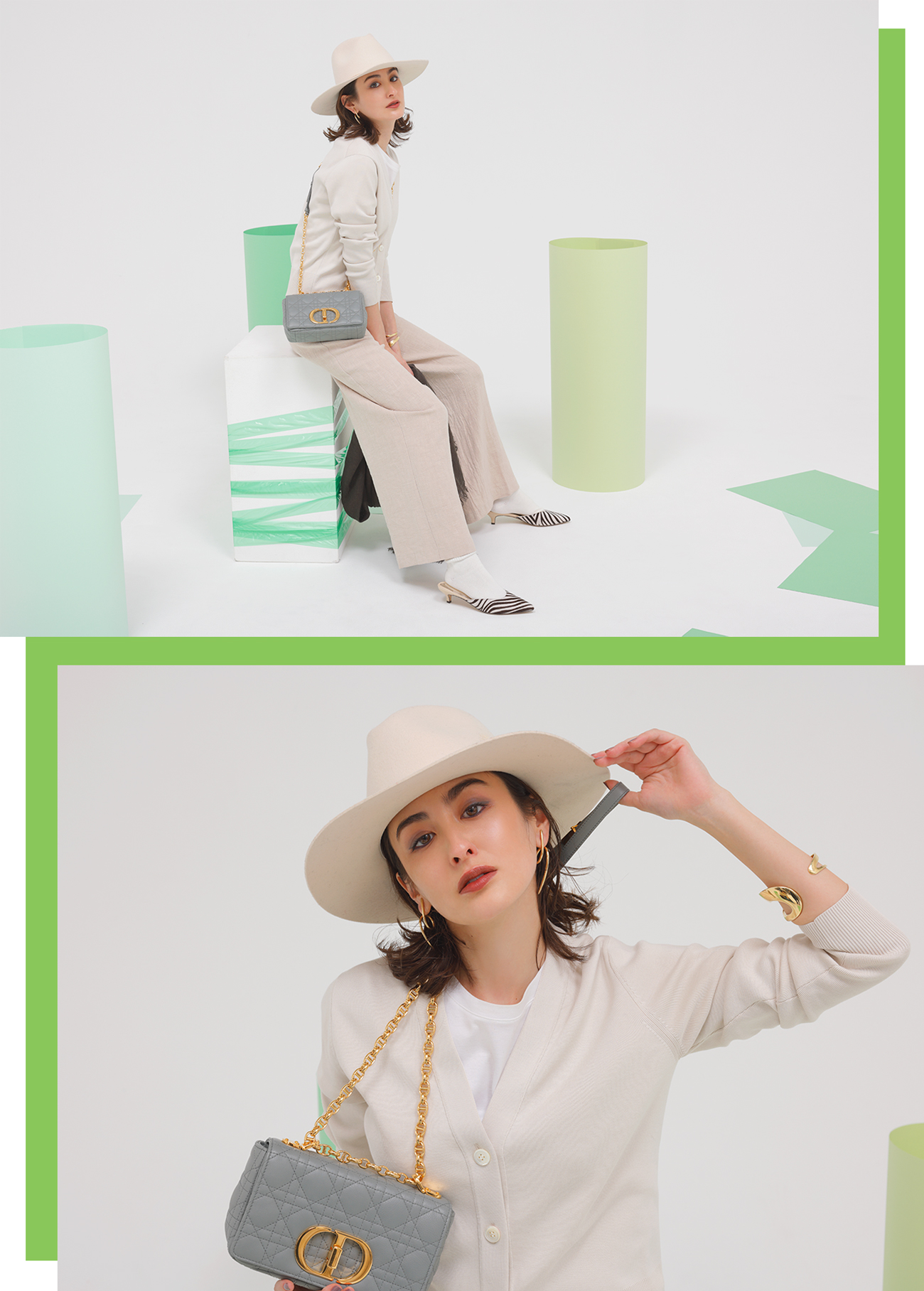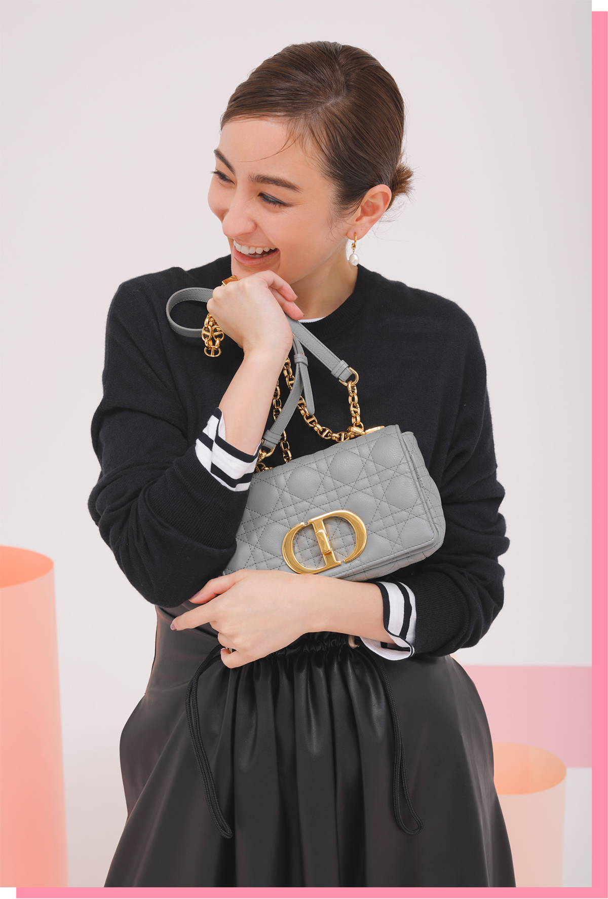 トレンドに左右されず長く愛せるデザインが魅力の「ディオール カロ」。オーちゃんがバッグを選ぶときも、“タイムレス”は外せないキーワードだそう。「流行っているからとかみんなが持っているから買う、ということはなくて、ずっと使えるかどうかが重要。メゾンブランドのバッグは、時間をかけて悩んで買うことが多いです。いつまでもウィッシュリストから消えないものや、20年後の自分も使いたいと思うものを、ひとつずつワードローブに加えていきたいです」