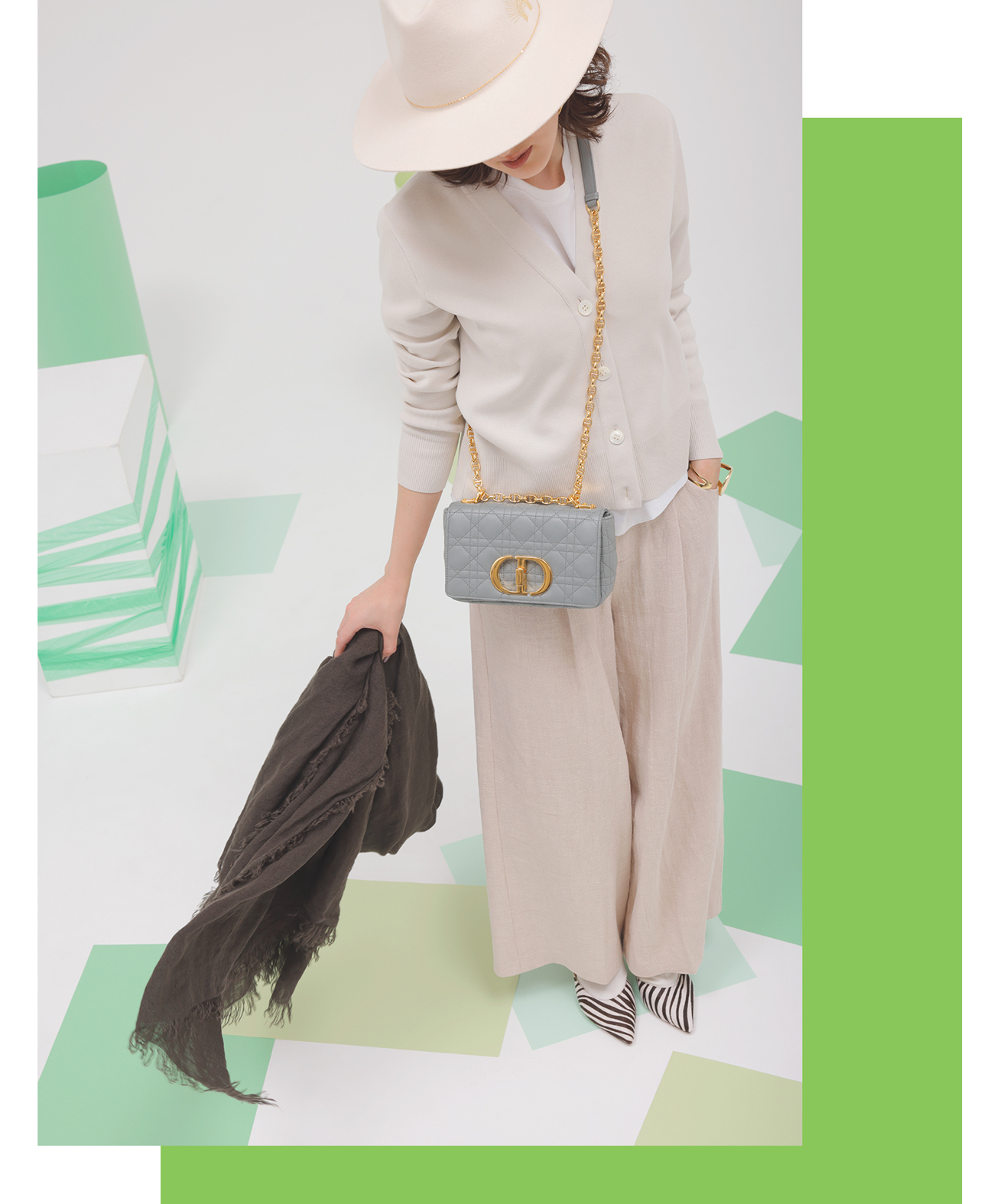 ベージュは引き続き、この春もトレンドカラー。ニュアンスカラーのワントーンコーデに「ディオール カロ」をクロスボディで取り入れて着こなしにメリハリを。中身を取り出しやすいフラップ型に加え、バックポケット付きで使い勝手もパーフェクト。着こなしも気持ちも軽やかにしてくれるバッグを週末コーデの相棒に。