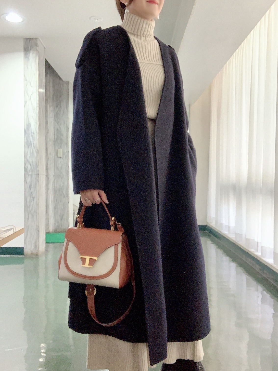 「このebureのコートは、もう3シーズンくらい愛用している一枚。ロング丈なので丈の長いニットワンピもすっぽり収まります。かなり肩がドロップしていて、そこにエポーレットがあしらわれているのが、シンプルだけどオシャレ見えするような気がしています。ebureのアウターはいつも大活躍するので、毎年欠かさずチェックしています」(編集N)