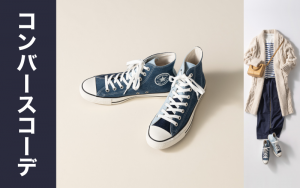 合わせるコーデを選ばない定番人気のスニーカー、コンバース。そしてお手頃な価格帯のユニクロやGU、ZARA、無印良品、ワークマン、Gap、H&Mなどの「コスパブランド」。どちらも、アラサー世代のコーデの強い味方です。