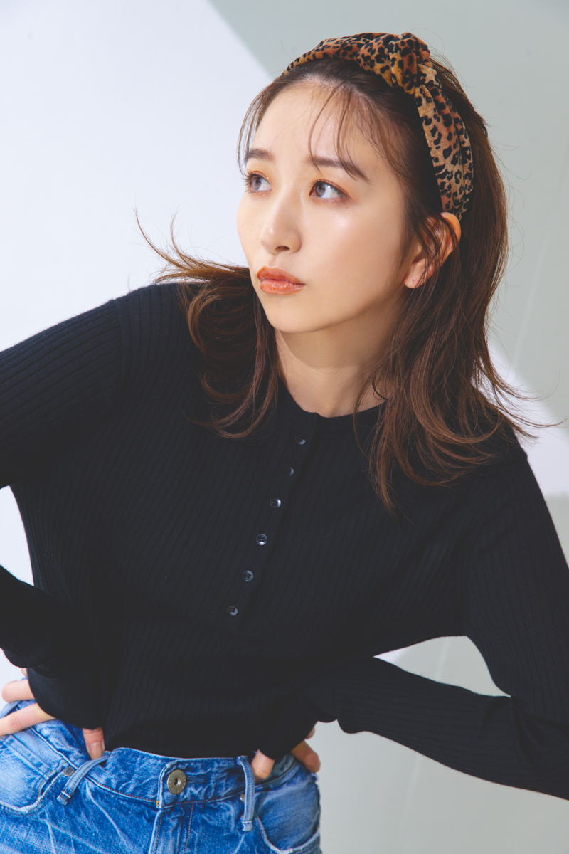 シンプルな黒ニット+デニムを大人に見せるレオパード柄のヘアアクセ。レディライクなベロア素材だけど、小さめのヒョウ柄だから辛口すぎずに使えます。しかもつけ心地がソフトで、「長時間使っても楽」と噂のNY発ヘアアクセブランド。カチューシャ¥13,000(ジェニファー オーレット/ザ ヘア バー トウキョウ)ニット¥49,000(エイトン/エイトン青山)パンツ¥23,000(アッパーハイツ/ゲストリスト)