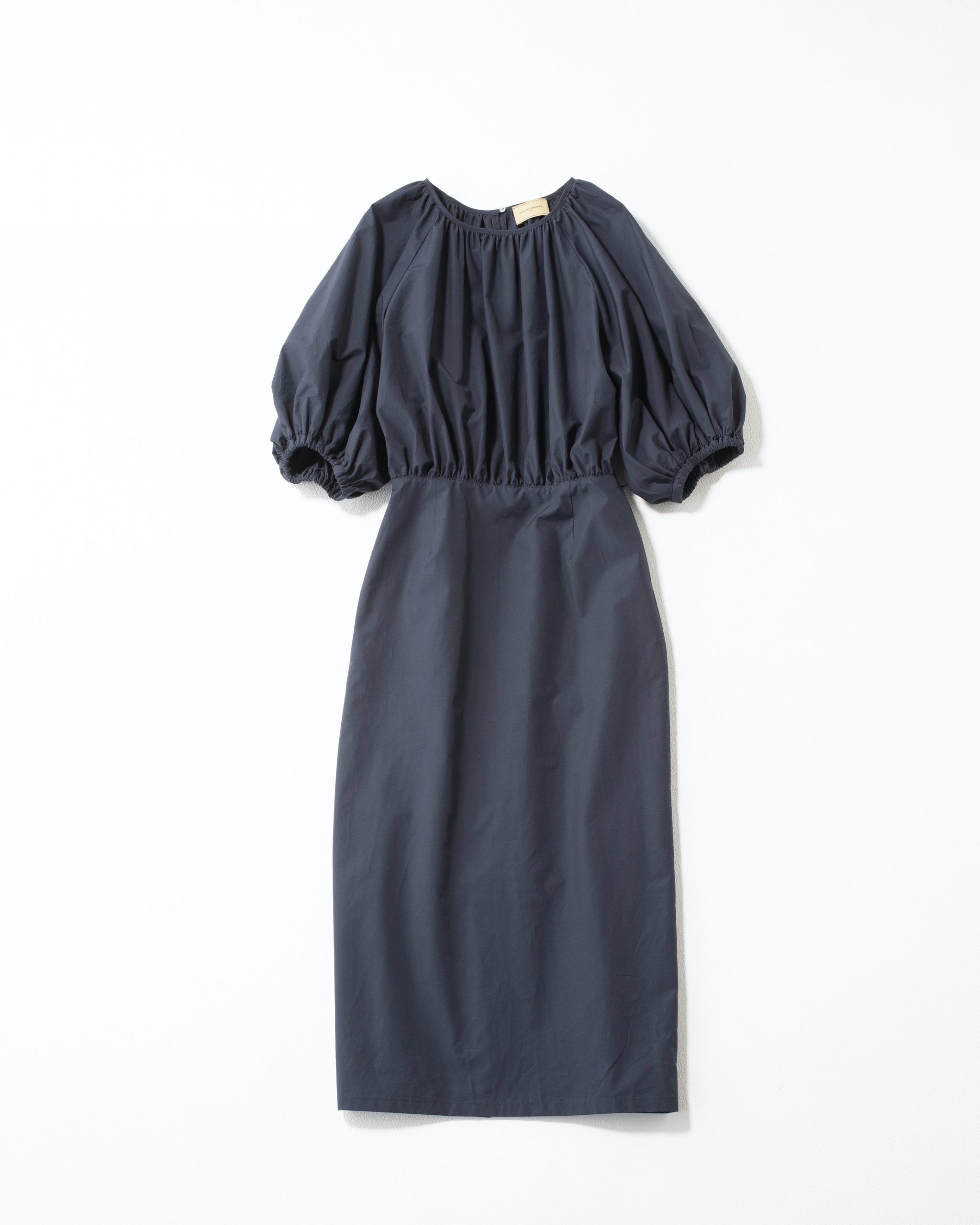 「今買うべきなのは普段にもオケージョンにも使えるワンピース。ネイビーならシーンも選びません。ボリューム袖が華やかなうえ、タイトなスカート部分でスタイルアップ効果も抜群!」ネイビーワンピース¥25,000(ユナイテッドアローズ/ユナイテッドアローズ 青山 ウィメンズストア)