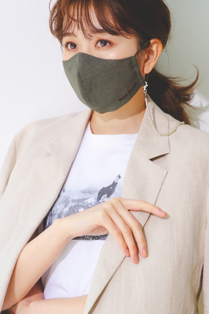 シンプルなマスクチェーンはどんなコーディネートにも合せやすく、横顔の洗練度もさりげなくUP。もちろんマスクを外した際も便利です。