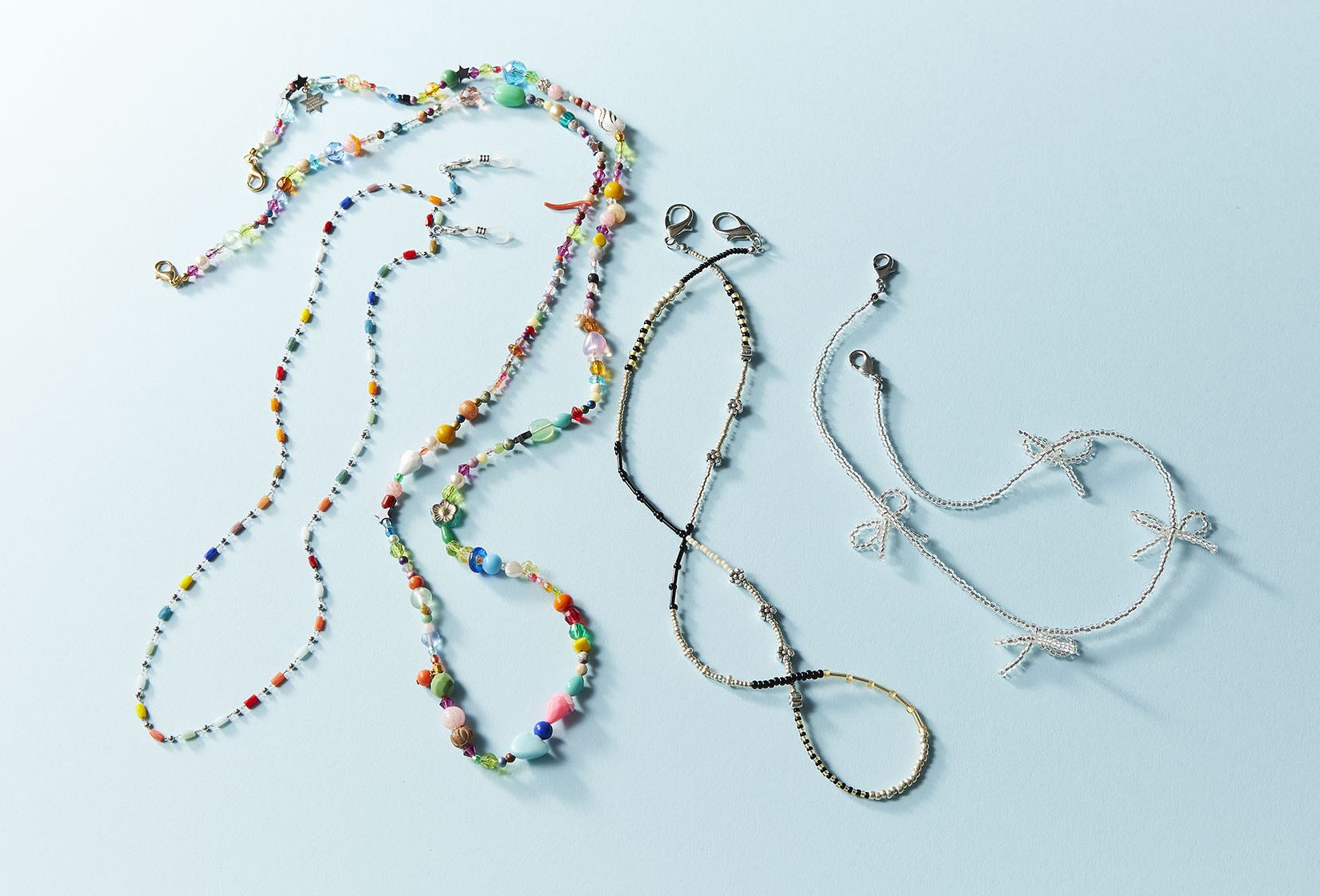 カラフルなビーズを使ったキッチュなデザインも可愛い!マスクとの色合わせやコーディネートがグンとたのしくなりそう。
