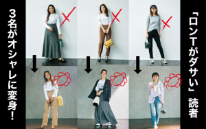 いまっぽいカジュアルに欠かせないのがロンT。半袖Tより断然、カジュアル上級者に見えますが実は微妙に着こなしが難しいアイテムです。それぞれの理由でロンTに苦戦中のCLASSY·リーダーズ3人がロンT攻略に挑戦しました!