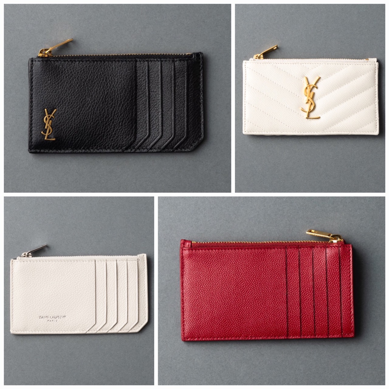 カジュアルリッチ派におすすめのサンローラン。ひとめで分かる”YSL”のカサンドラロゴもシンプルな型押しロゴも、上品なムードがさすがです。