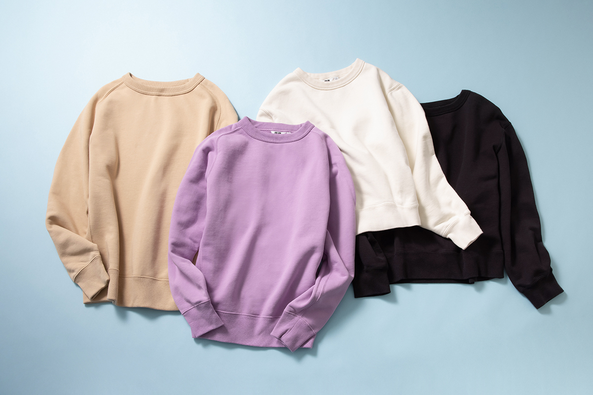 「こちらは、毎年買い足しているUniqlo Uのスウェット。サイズはSとLでそろえていて、パンツの日なら短丈なので脚長効果のあるS、スカートならゆるっと着られるL、と合わせるボトムスによって使い分けています。肉厚な生地感にキュッと詰まった首元など、『好き!』がつまっているシリーズです」