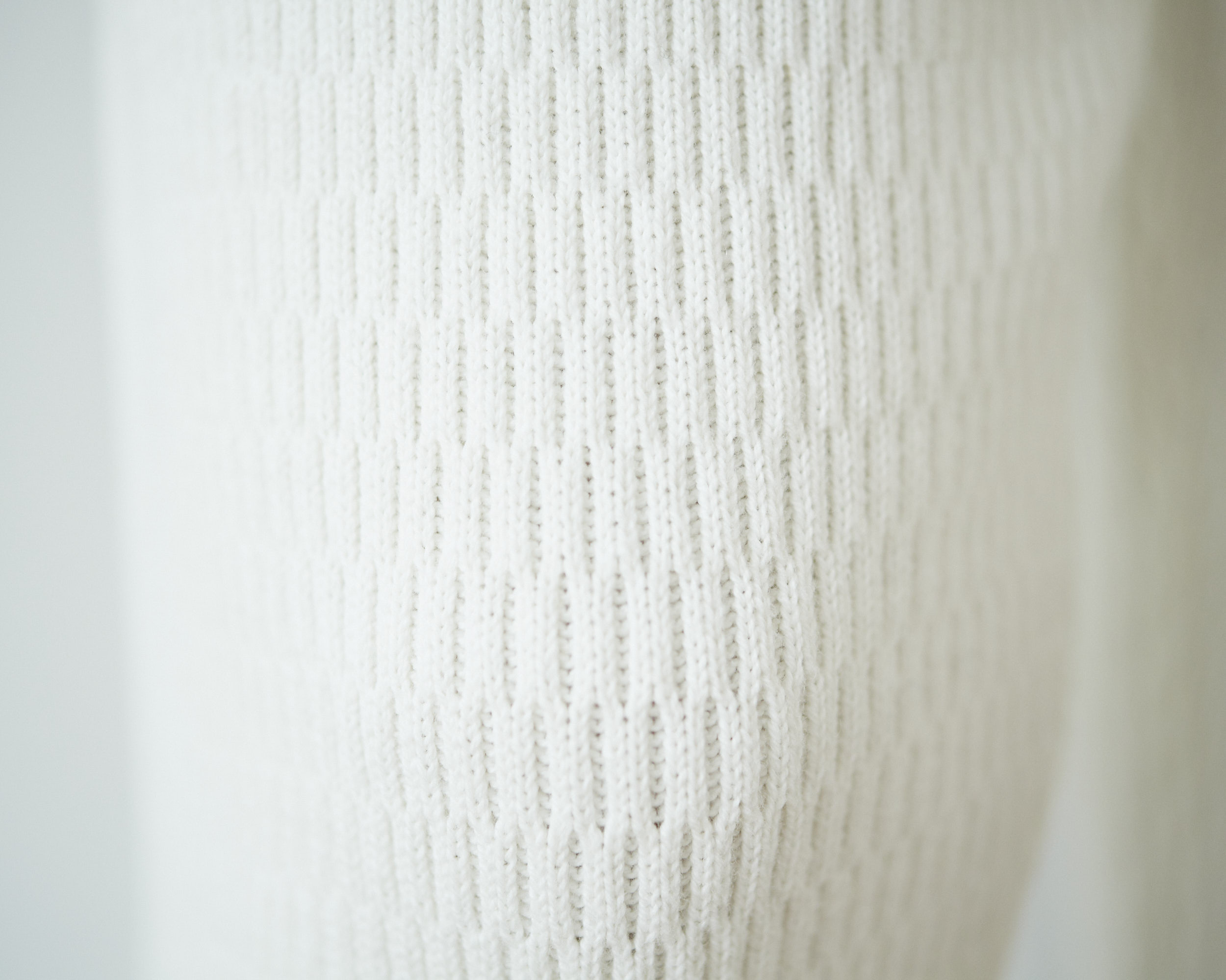 素材感はこんな感じ。伸縮性もあってとってもラクちん!リブではなく変わり織りなので、体の線を拾いすぎません。