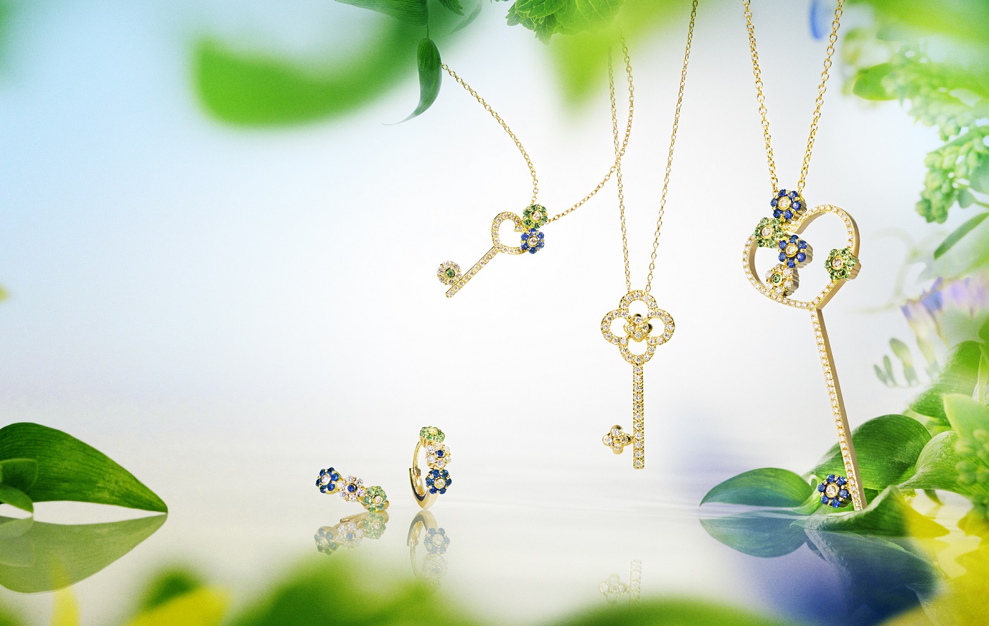 2018年のサマーコレクションのテーマは、イタリア語で“楽園”を意味する“Paradiso(パラディーソ)”。扉の向こうに広がるのは、眩しい日差しの中に溢れる緑と風に揺れる色鮮やかな花々…そんな楽園の扉を開く鍵「ENTRATA(エントラータ)」シリーズの新色をメインアイテムとした、幻想的な楽園をイメージしたジュエリーを提案します。
