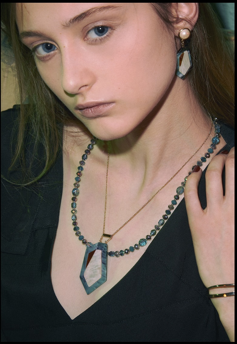 LANVIN en Bleuから、春夏の新作コレクションが登場。シーズンカラーのグリーンを、カットガラスや樹脂などの素材でより夏らしい軽やかな印象に仕上げたイヤリングやペンダントは、ヴィンテージアクセサリーのようなデザインが大人っぽいムードを演出。カジュアルからシックな装いまで、日々の様々なシーンをトレンド感たっぷりに彩ります。