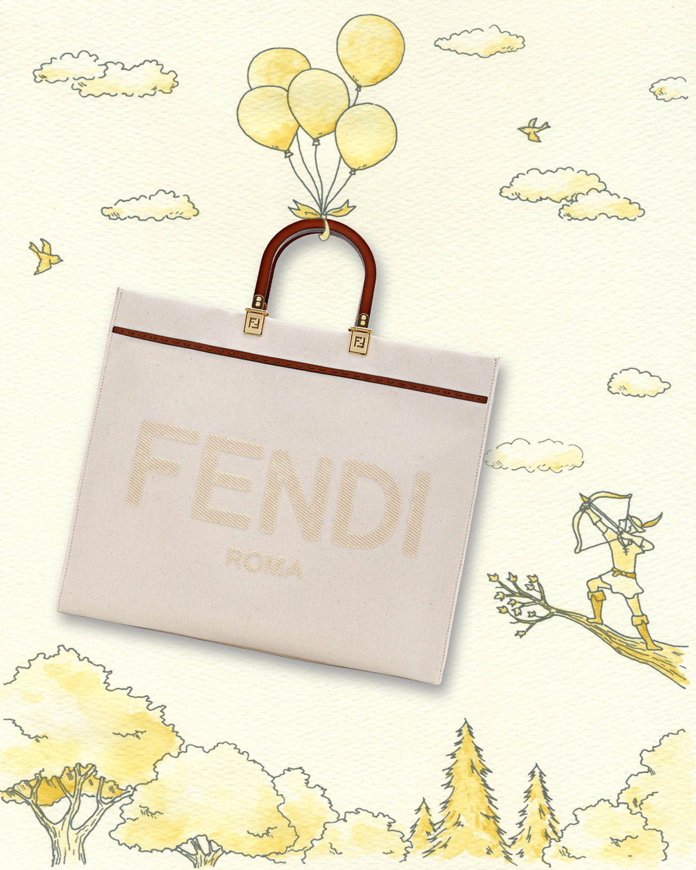 端正なスクエアフォルムにエンボス刺繍のロゴ、FFロゴデザインのゴールド金具を配して、カジュアルなキャンバストートをモダンに昇華。マチがしっかりあるので収納力もたっぷり、取り外し可能なストラップをつけてショルダーバッグとしても使えるデザインです。バッグ「サンシャイン ショッパー」〈H31×W35×D17cm〉¥294,800(フェンディ/フェンディ ジャパン)