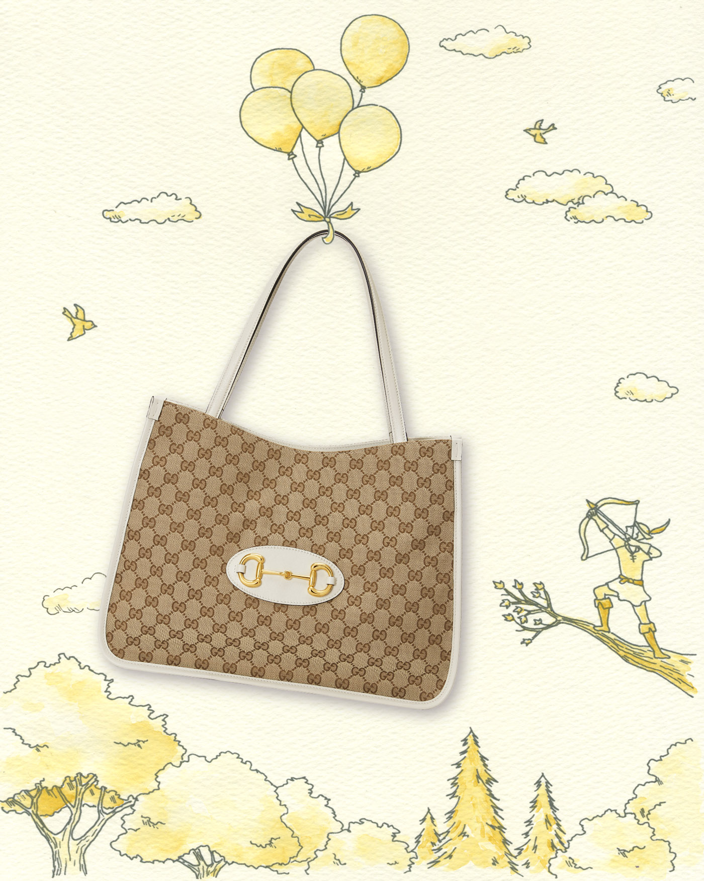 GGパターンにホースビットがキラリと際立つ、ブランドを象徴するデザイン。丸みのあるシルエットやホワイトレザーのトリムがエレガントさを添え、さらに軽く柔らかく持ちやすい、実用性も兼ね備えたクラシックなバッグは、毎日のパートナーにぴったりです。バッグ「グッチ ホースビット 1955」〈H28.5×W38×D13cm〉¥206,800(グッチ/グッチ ジャパン)