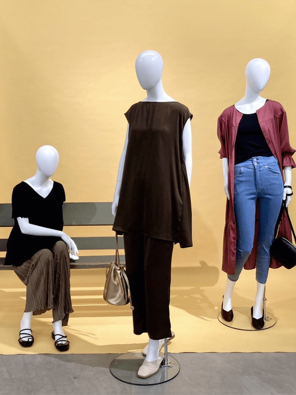 なめらかな落ち感とシワが目立ちにくいシボ感のある、上質なヴィンテージサテン生地。ベルトでシルエットに変化をつけられるトップスや、スリット入りのパンツなど、細部までこだわったデザインで、近所へのおでかけにも活躍します。それぞれ単品使いもできるので、お気に入りのコーディネートを楽しんで。