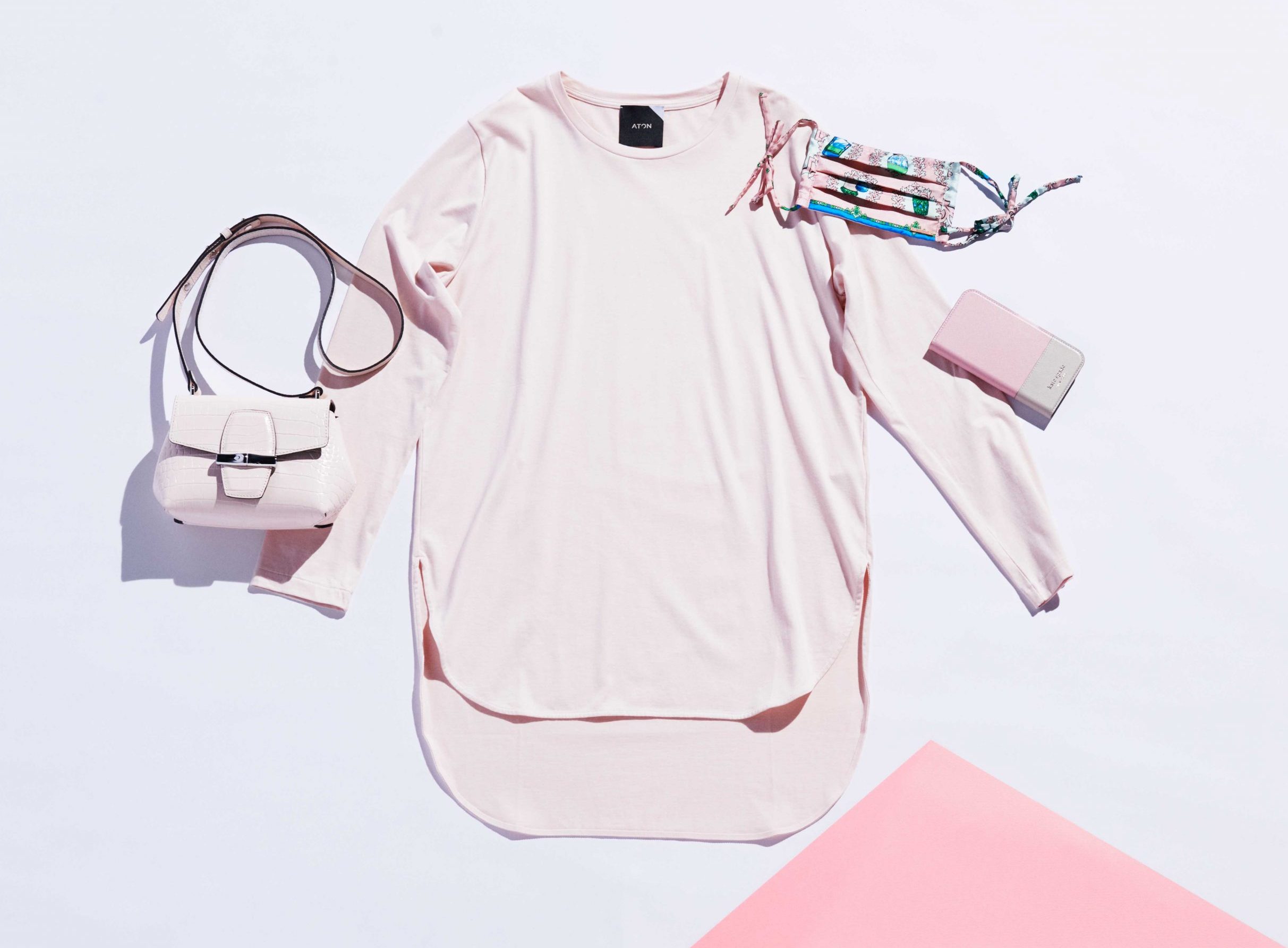 お付き合いが始まり、ずっと一緒にいたいと感じたら。優しく甘いベビーピンクは、彼に安らぎと包容力を感じさせるため、恋愛運をアップします。バッグ¥63,800(ロンシャン/ロンシャン・ジャパン)カットソー¥17,600(エイトン/エイトン青山)マスク¥3,080(マニプリ)スマホケース¥12,100(ケイト・スペード ニューヨーク/ケイト・スペード カスタマーサービス)