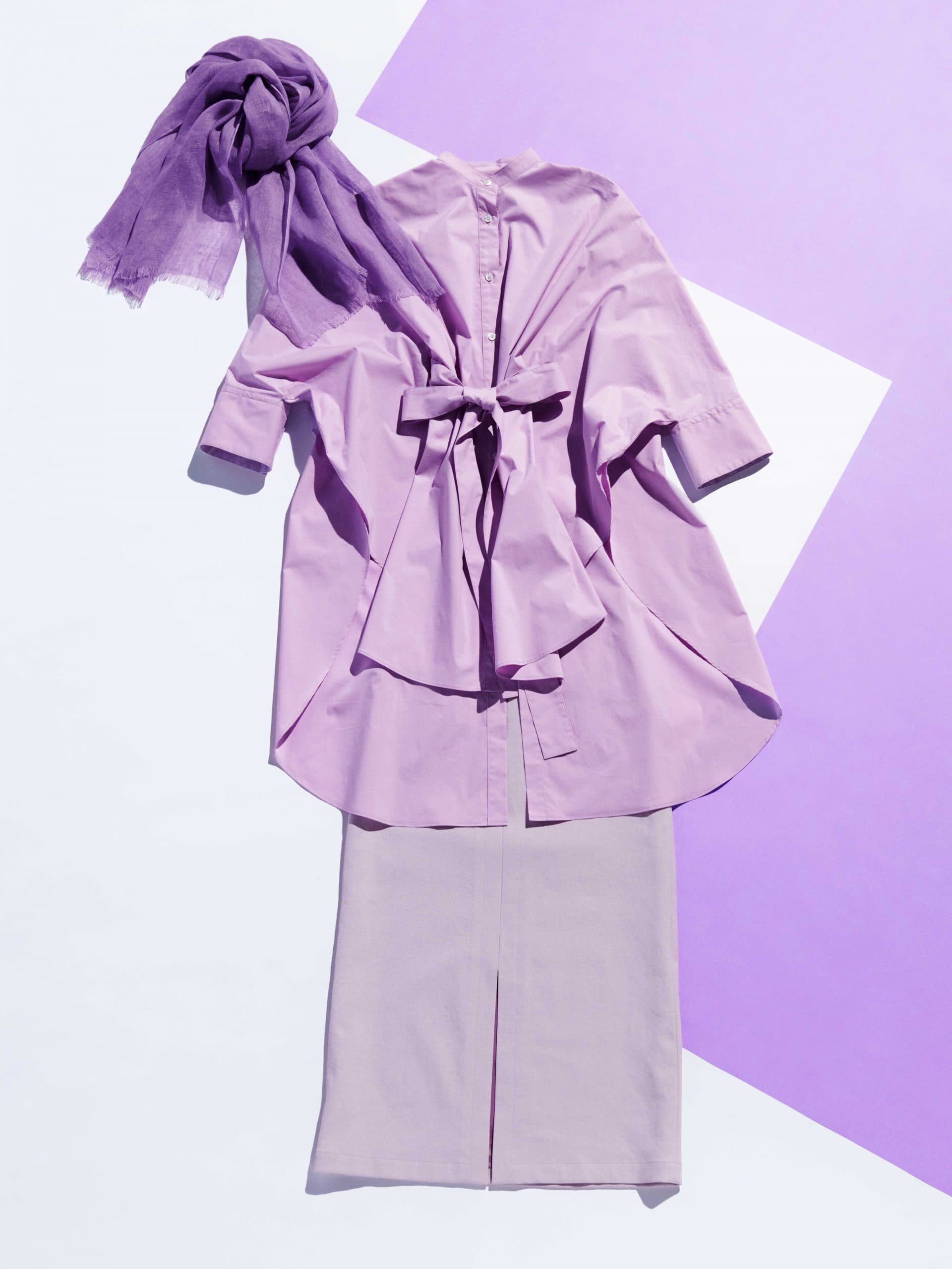 体が中で泳ぐリラックスシルエットのロングシャツや前スリットのロングスカート、初夏の爽やかな陽射しが似合うリネンストールetc.。彼からの愛情をもっと欲しいと感じたら、ラベンダーの魔法を信じて突き進むべき。ストール¥13,200(ルーニィ)ブラウス¥28,600(LE PHIL/LE PHIL NEWoMan 新宿店)スカート¥20,900(アルアバイル)