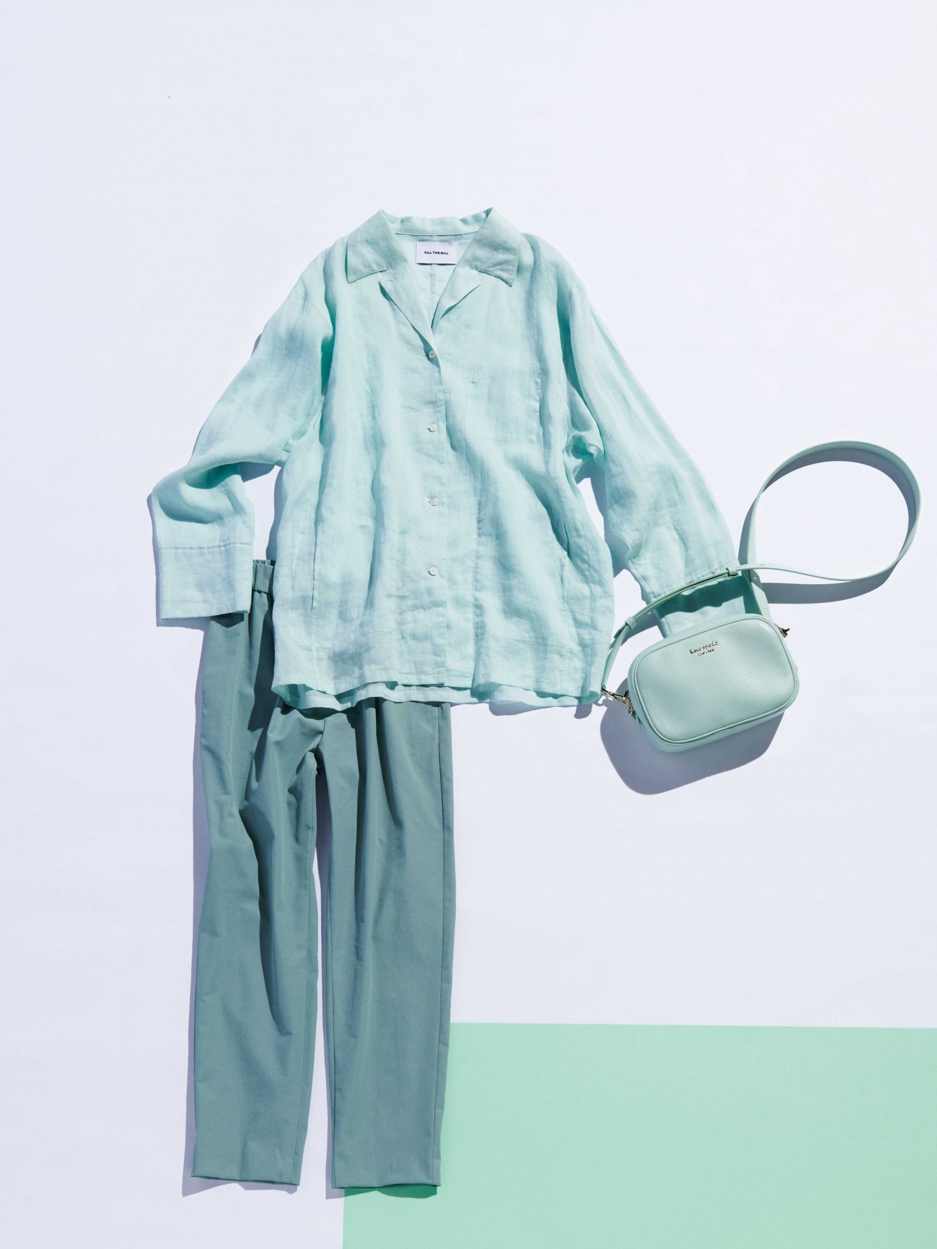 出会いの場に行くときや、新しいご縁を求めているときに。ミントグリーンを身につけると、風のエネルギーが新しい出会いを呼び寄せてくれるそう。リネンシャツやミニバッグなどデイリーアイテムで身につけるのが吉。シャツ¥28,600(フィル ザ ビル/シック)パンツ¥16,500(ソーノ/ミラク)バッグ¥33,000(ケイト・スペード ニューヨーク/ケイト・スペード カスタマーサービス)