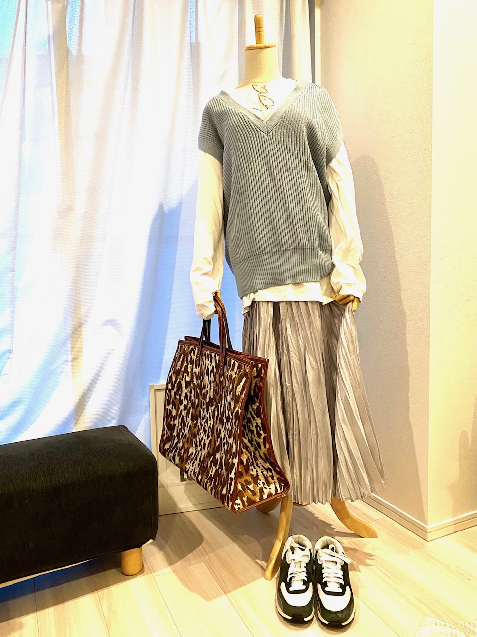 Shoes→DIANA、Shirts→AGLINI、Knit→BIRTHDAY BASH、Pants→Shinzone、Bag→Hermès