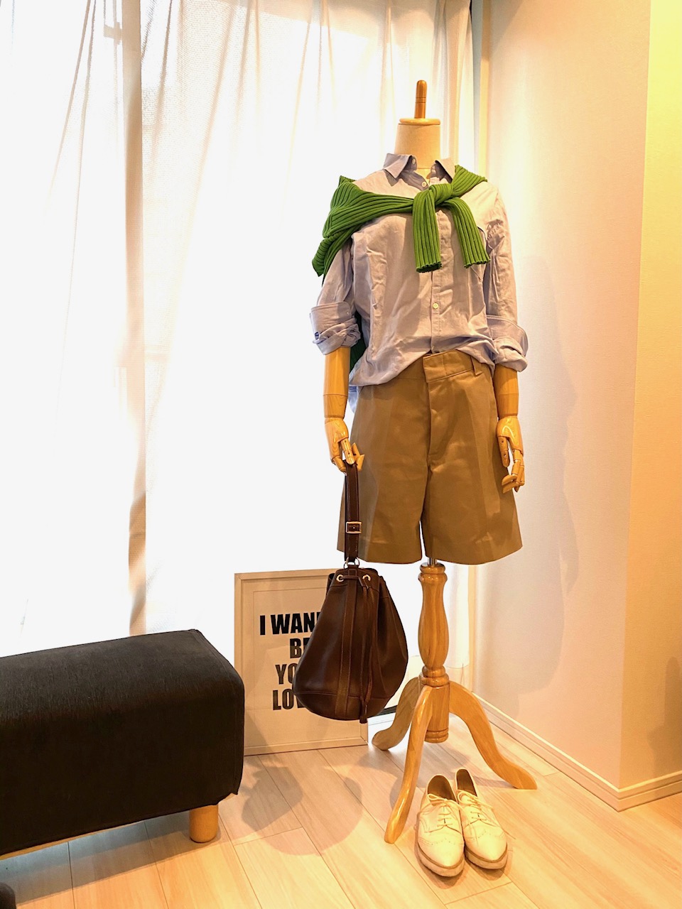 ストレートタイプ上半身から膝上までがむっっちりしていますが、膝下はすっと細いのが特徴。はくだけで今季らしくなるハーフパンツはそんなストレートタイプにおすすめ。レースアップシューズと合わせてマニッシュに。