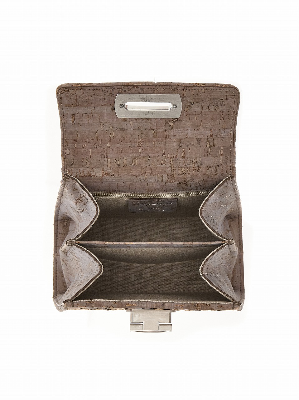 バッグのボディ部分に使用したコルクは、FSC(森林管理協議会)認証。伐採時に木に害を与えない天然で再生可能な資源からできたコルクは、自然と調和した優しげな雰囲気。