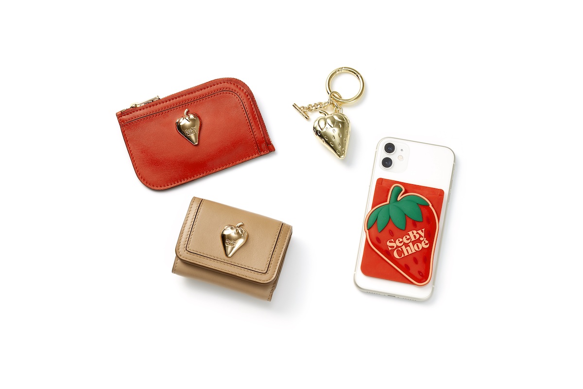 同カプセルコレクションには、“いちご”をモチーフにしたチャーミングなアイテムもラインアップ。いちごのメタルパーツをあしらったバッグやスモールレザーグッズ、そしてモバイルアクセサリーなど、キュートな仕上がりのアイテムが勢ぞろい!
