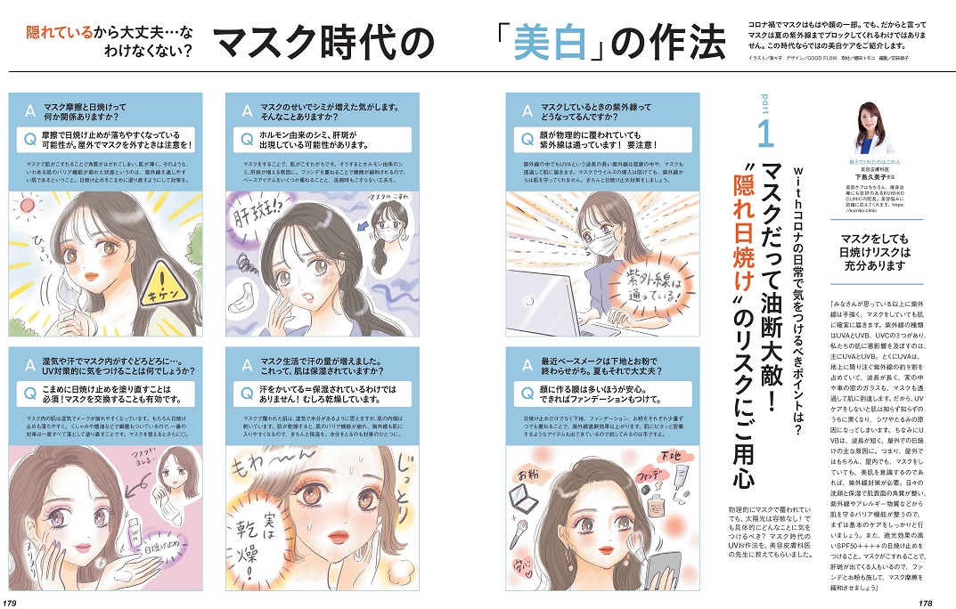 2021年春の時点で、マスクはもはや顔の一部。つけない日は、ほとんどないといっても過言ではないくらい。でも、おかげで顔の大部分は隠れているから、紫外線対策はサボり気味でも大丈夫…なんて、まさか思ってないですよね!? この特集では、コロナ禍の時代に即した“美白ケア”について、徹底的に取材しました。