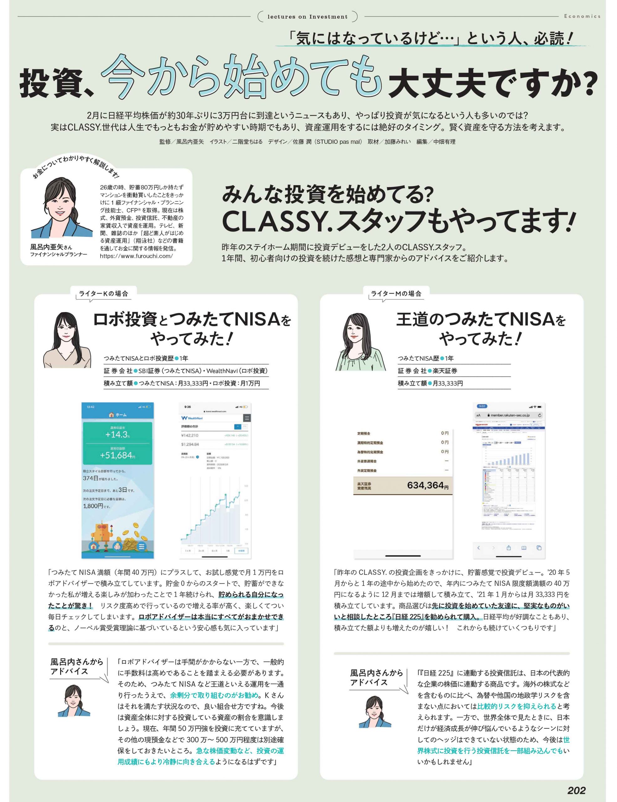 はい、もちろん大丈夫です!というか実は、CLASSY.世代は人生でもっともお金が貯めやすい時期でもあり、資産運用をするには絶好のタイミングらしいんです。ゼロから始める正しい投資の方法を、わかりやすく解説していますので、読んだ今日から始めましょう!