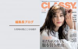 以上、ファッションはもちろん、ビューティからマネー、スターの横顔…と、みどころ満載のCLASSY.6月号。ぜひお手に取ってご覧ください!