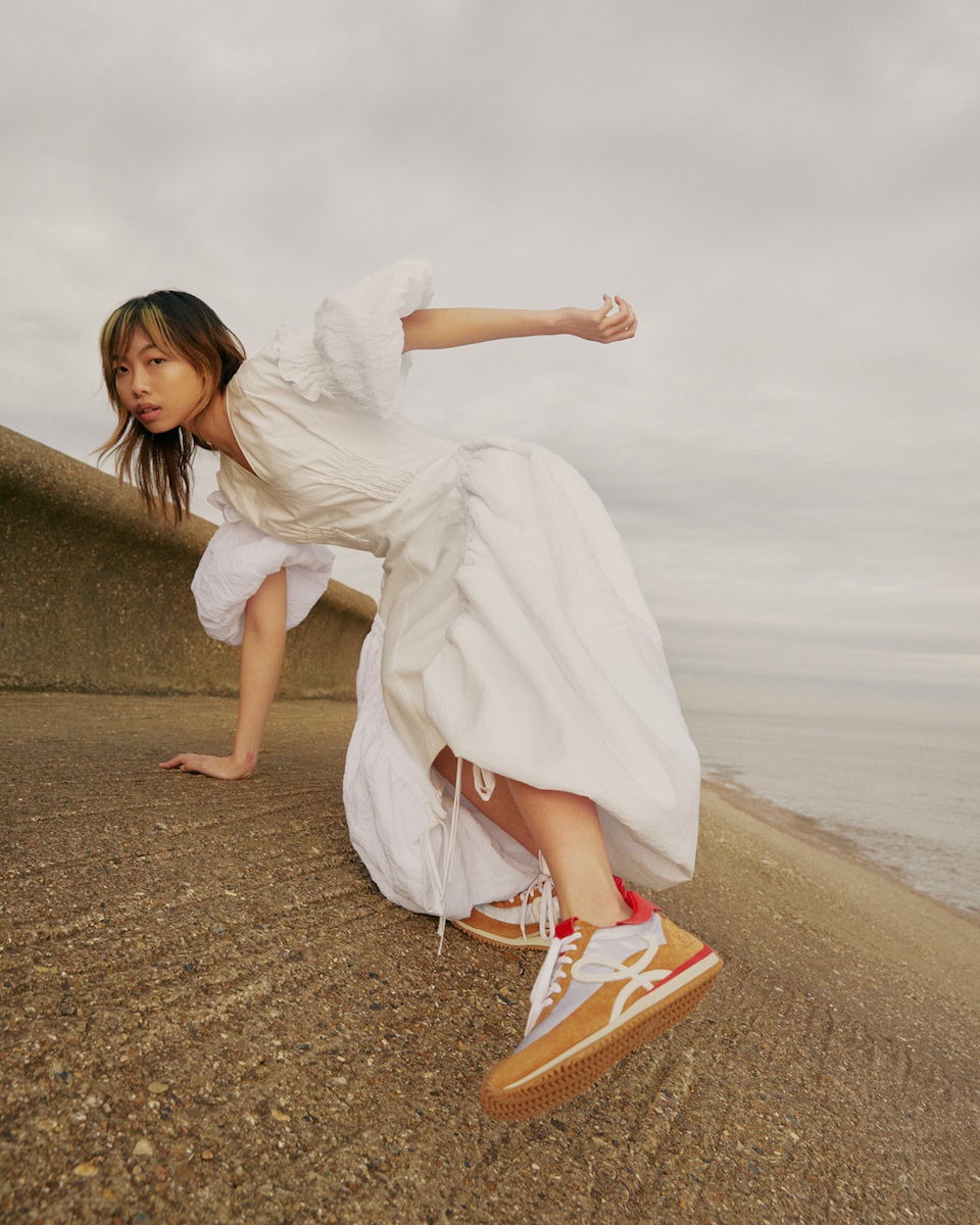 1970年代を思い出させる流線形のトラックシューズからインスピレーションを受け誕生した「フローランナー」。ブランドの頭文字である「L」の文字がエンブロイダリーされたボディや、パーツごとのカラーブロッキングなど、ディテールまでこだわりが満載。クリーンなフォルムのスニーカーだから、カジュアルウェアからドレスまで、幅広いコーディネートにマッチします。