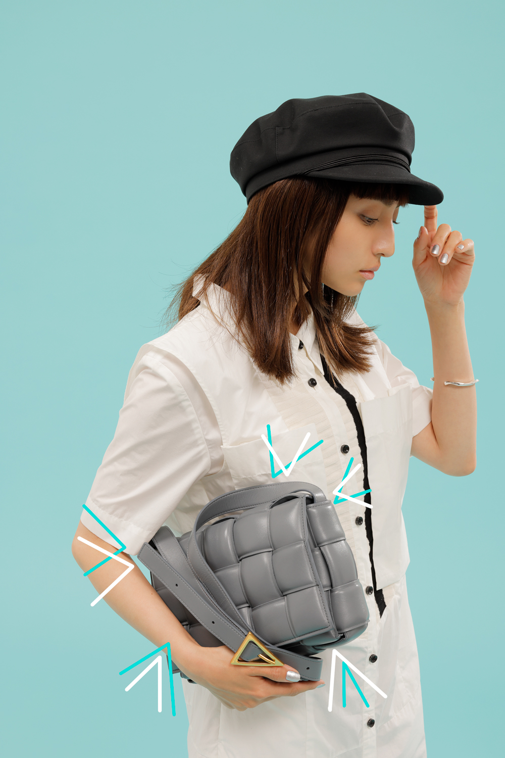 程よくボリュームのある「パデッド カセット」は、コーデいらずでサマになる夏のワンピスタイルにも適任。キレイめなシャツワンピを主役に、白・黒・グレーのカラーレスで統一すれば、甘口派も取り入れやすいモードなスタイリングが実現。ストラップの長さを調整して、肩に掛けたり斜め掛けにしたり、クラッチ風に抱えたり。着こなしに合わせて自分らしい持ち方を楽しんで。
