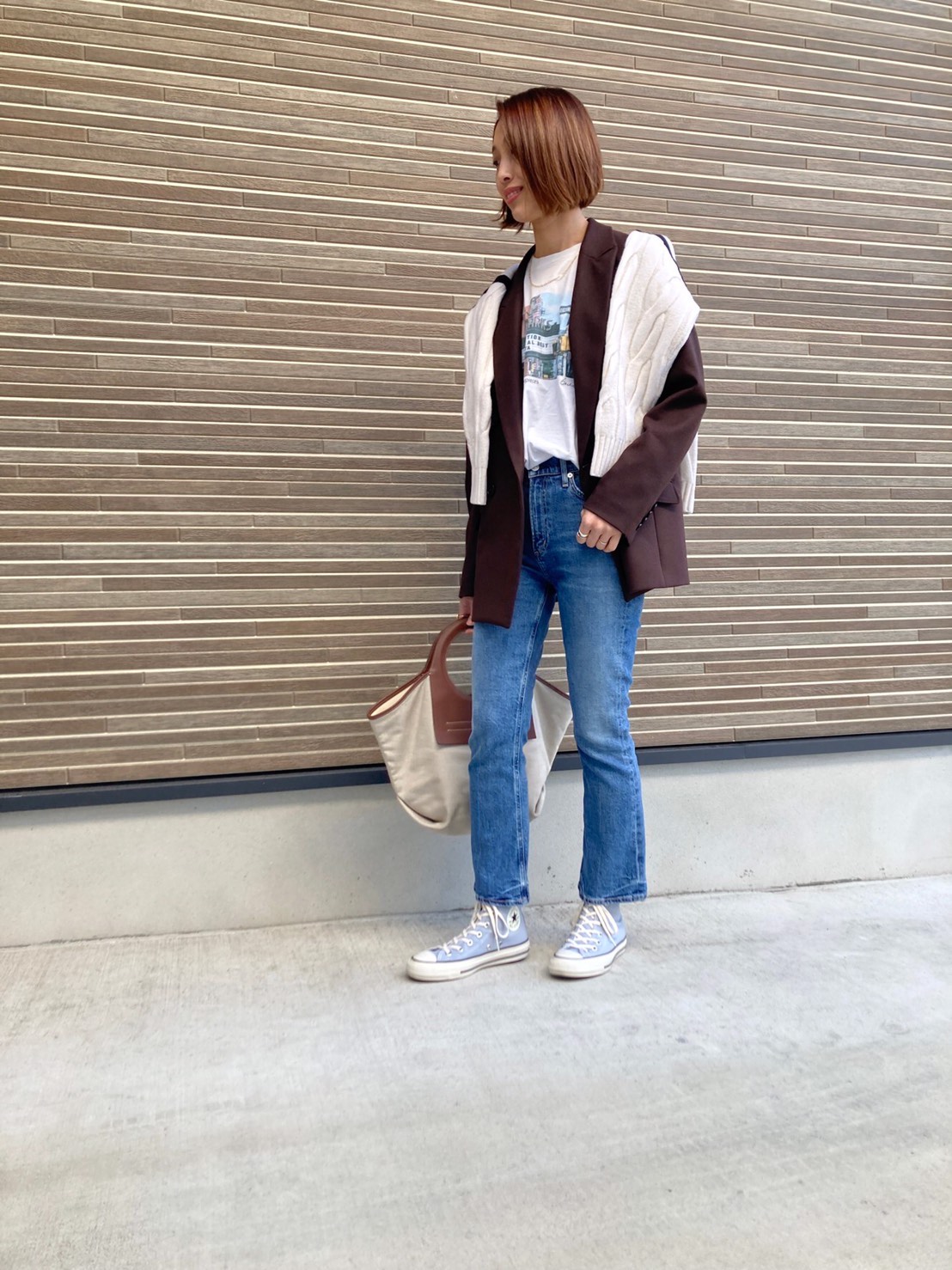 「ハイカットはクロップド丈のデニムと合わせてもバランスよくまとまります。ラフな雰囲気が可愛いコンバースですが『カジュアルすぎるかな?』というときはジャケットをはおることが多いです」