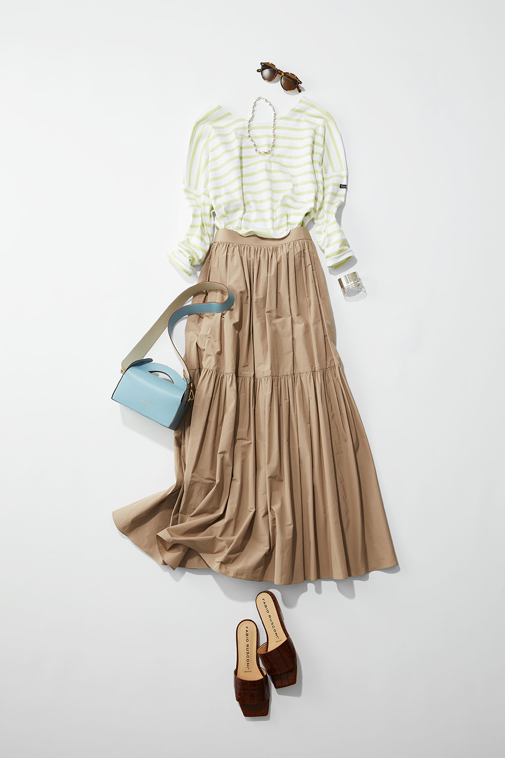 ボーダーのカジュアル感がスカートコーデほどよくこなれさせてくれる