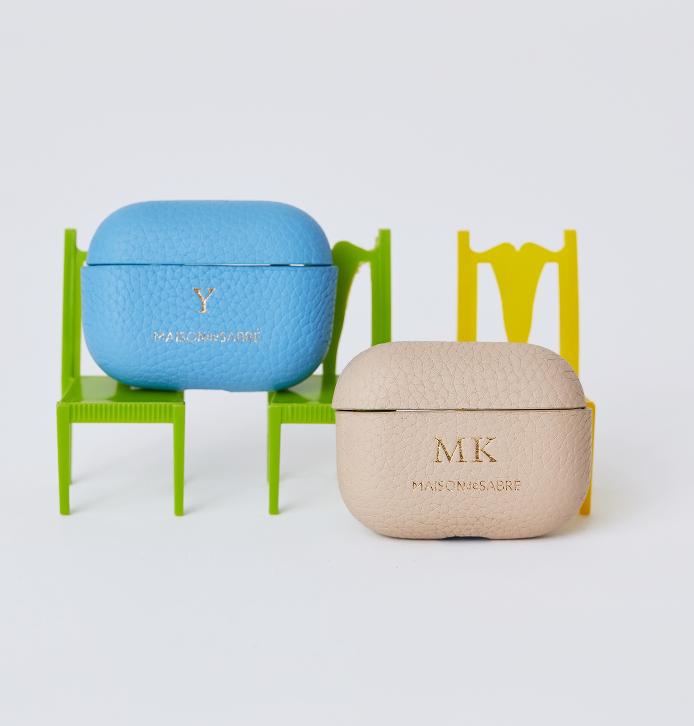 しっとりと手になじむレザーが高級感たっぷり。イニシャル刻印が可能で、プレゼントにも最適です。エアーポッズケース各¥9,790(ともにメゾン ド サブレ/CRP TOKYO)