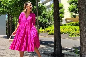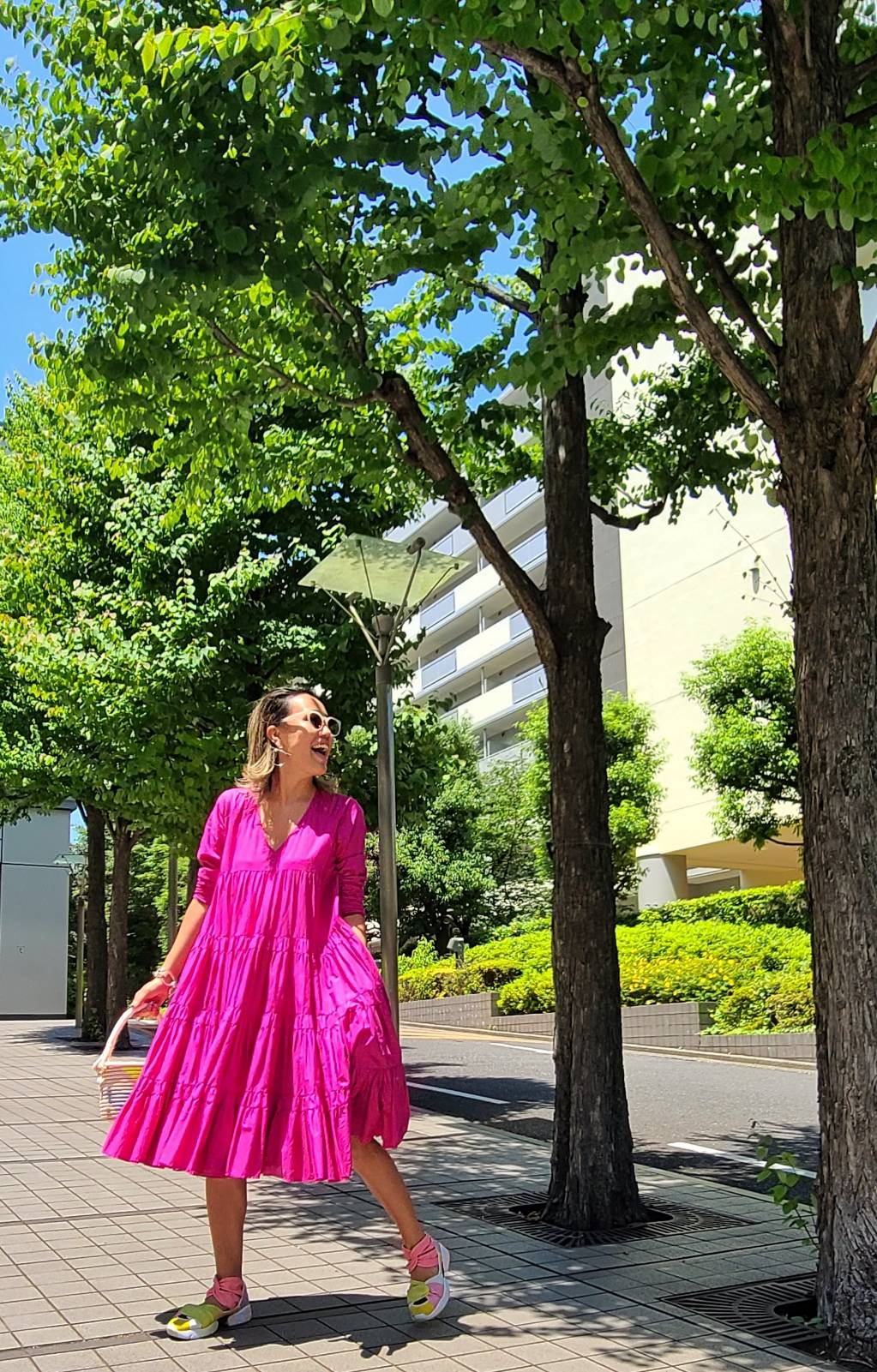 Merletteのビビッドピンクワンピはスニーカー合わせでデイリーに愛用♡