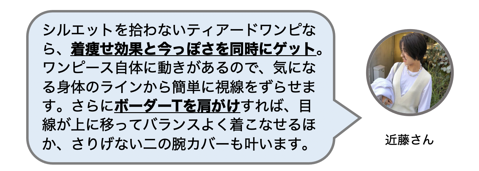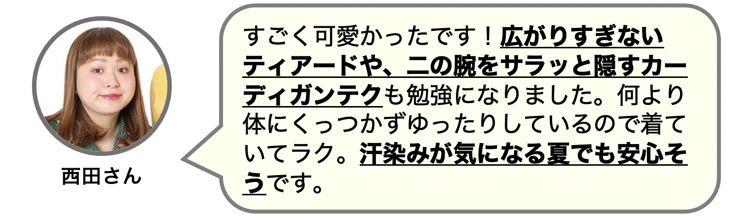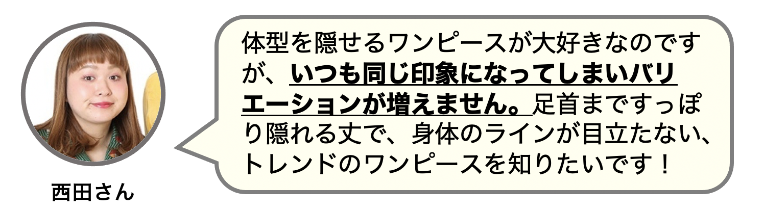 露出が増え体型が気になる夏ですが、ぽっちゃり体型でもオシャレを楽しみたい!というアラサー女子は多いはず。そこでぽっちゃりアラサー代表として、人気急上昇中の女芸人・世間知らズの西田さおりさんに登場いただき、スタイリスト・近藤さんがレクチャーする「体型カバーコーデ」に挑戦していただきました。今回は「お腹痩せコーデ編」です。
