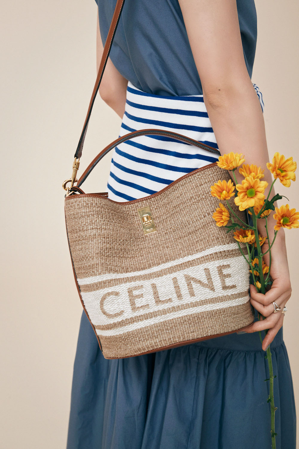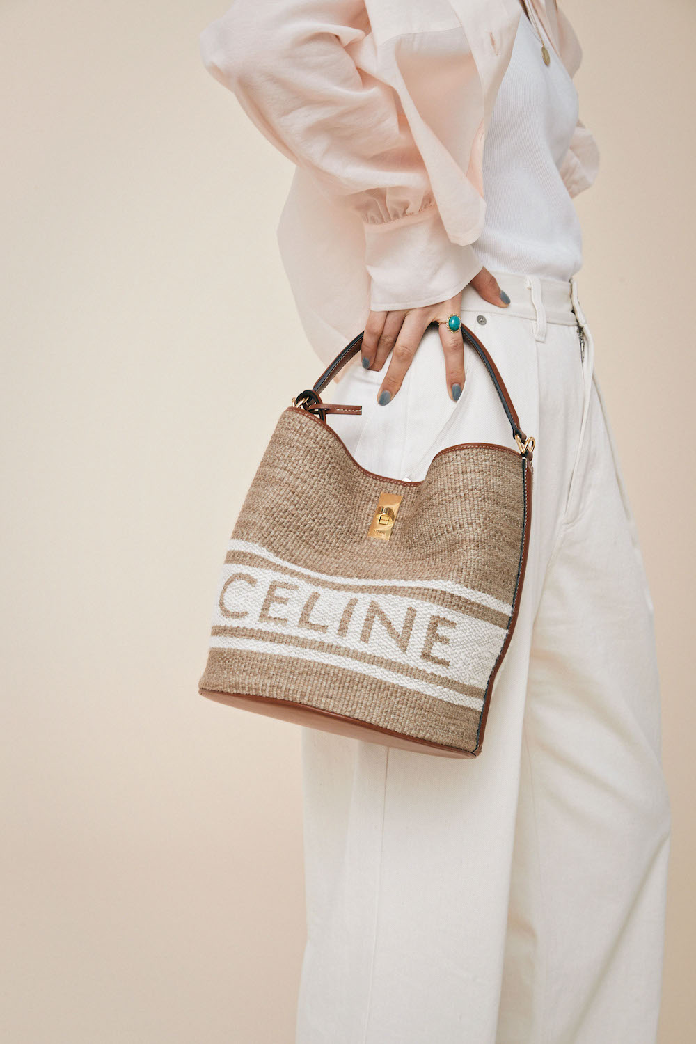 「16(セーズ)」は、エディ・スリマンがセリーヌのクリエイティブ・ディレクターに就任し、初めてデザインを手掛けたバッグコレクション。メタルのターンロックディテールはそのままに、カジュアルな雰囲気にアレンジした「16(セーズ)バケット」に、軽やかなテキスタイル素材の新作が登場。白抜きロゴがアイキャッチーな新バッグは、同素材のポーチ付き。軽量かつ収納力の高いバケツ型で、使い勝手もパーフェクト。