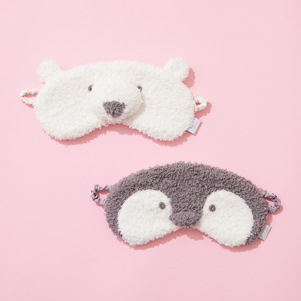 モコモコ素材とその表情がまさに癒し系♡な、白クマとペンギンフェイスのアイマスク。可愛いだけでなく、再利用リサイクル糸使用で接触冷感というこだわりも。