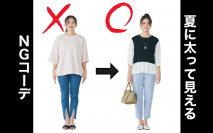 太って見えるNGコーデ「ゆるめトップスが着太りする」改善例