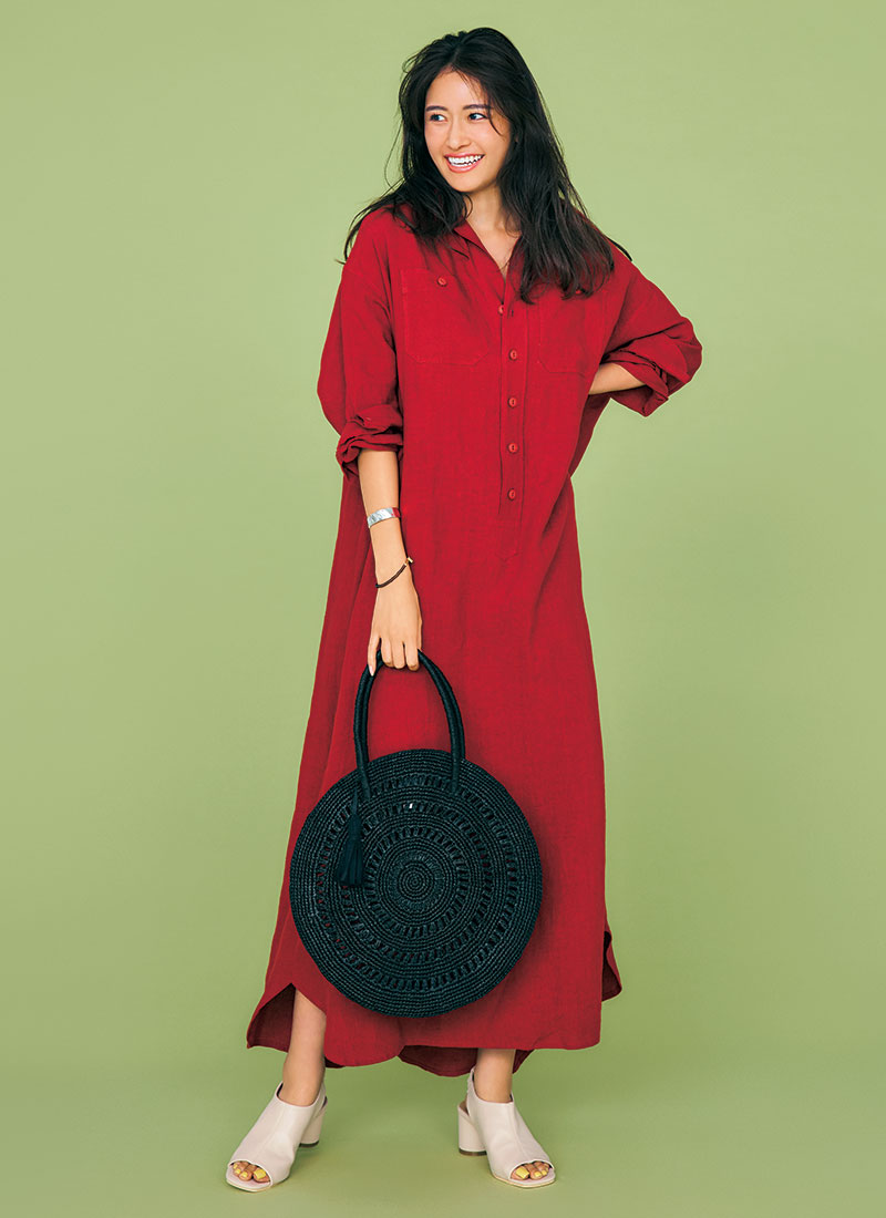 ゆったりとしたシルエットのリネンシャツワンピがヘルシーにキマる