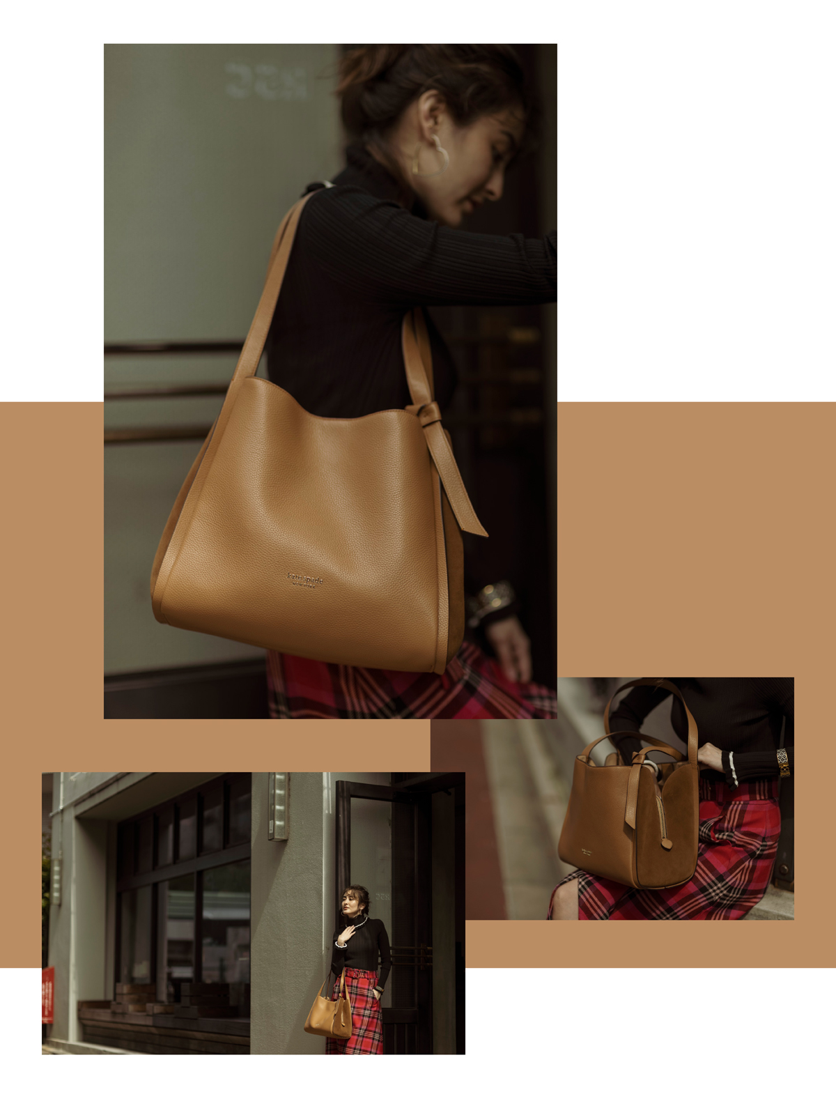 秋になると恋しくなるトラッドスタイル。柔らかくてユースフルなキャメルのバッグがトラッドスタイルをアップデートしてくれます。